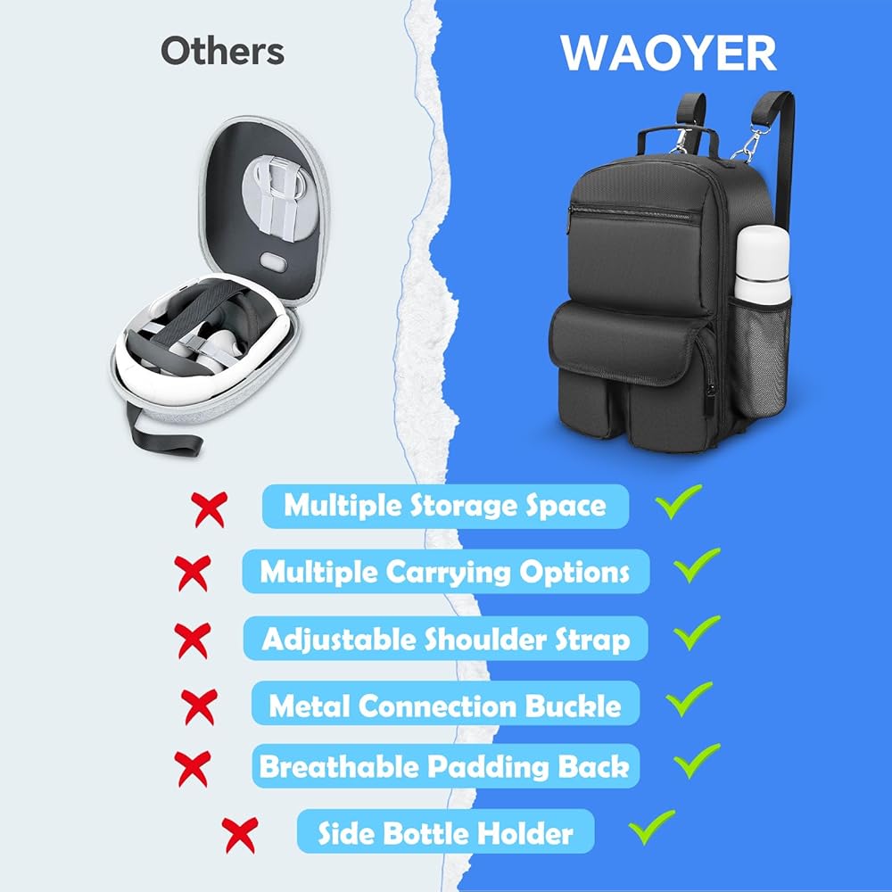 Large Capacity: Our carrying case offers organized storage for your Meta Quest 3/Oculus Quest 2/Quest Pro VR headset, controllers, cables, power bank, wallet, cell phones, bottle, and other accessories, keeping everything neatly in place. Durable design ensures hassle-free storage and transport