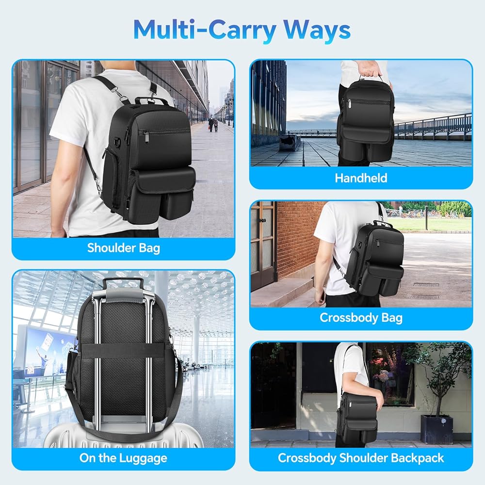 Multiple Ways to Carry: The hand strap and detachable shoulder straps achieve different carry ways: hand-held/single-shoulder/backpack/crossbody or fixed on the luggage trolley, multi-purpose carrying method makes you more convenient to use. The breathable mesh back panel helps take some pressure off your back