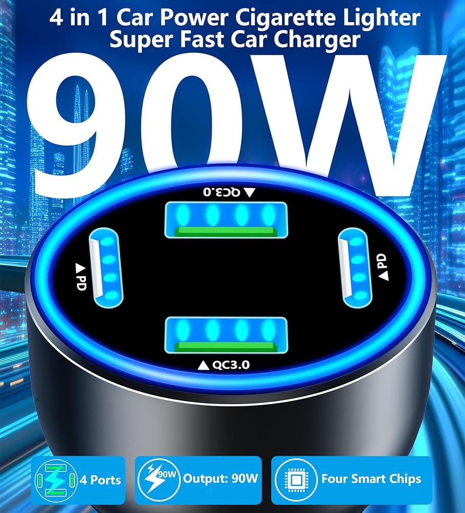 【Superior Compatibility】: Suitable for all 12V/24V small cars and large truck sockets, Compatible with all electronic devices. Such as: iPhone 16/16 Plus/16 Pro/16 Pro Max/15/15 Plus/15 Pro/15 Pro Max/14/14 Plus/14 Pro/14 Pro Max/13/13 Mini/13 Pro/13 Pro Max/12/12 Mini/12 Pro/12 Pro Max/11/11 Pro/11 Pro Max/XR/XS/XS Max/X 8 7 6 5/iPad, Galaxy S24/S23/S22/S21/Note 20/10, Google Pixel, Moto, Tablet and more. Our car charger can also charge Cameras, GPS, Power Banks, Driving Recorders, Drone, etc.