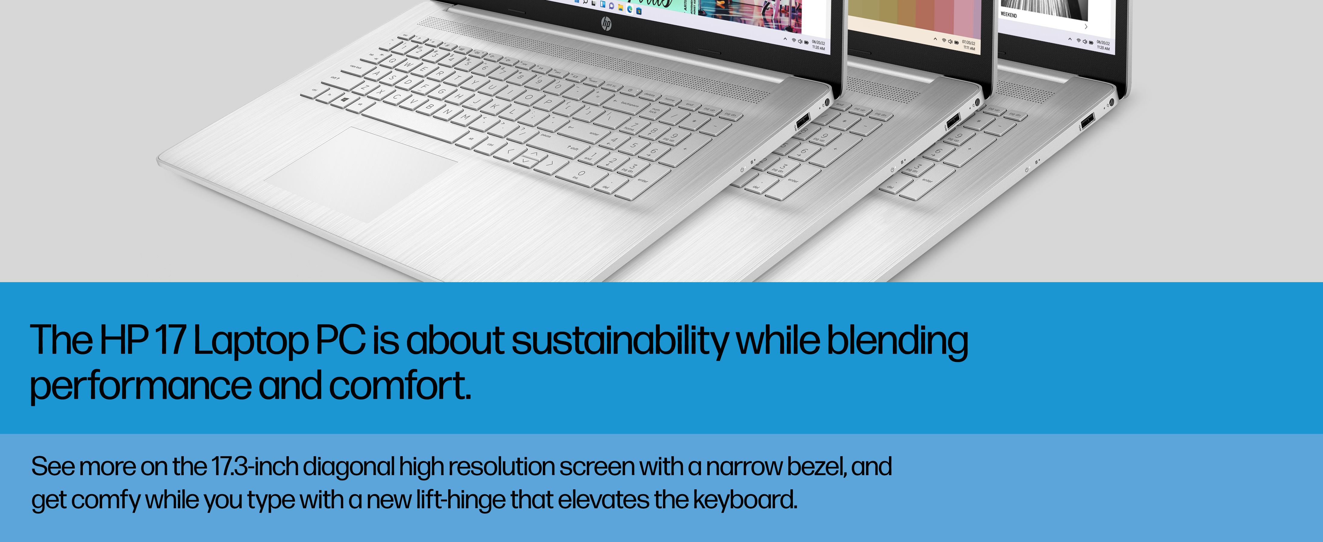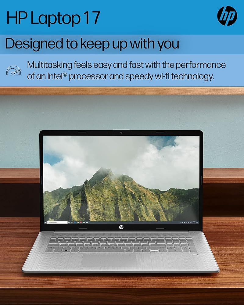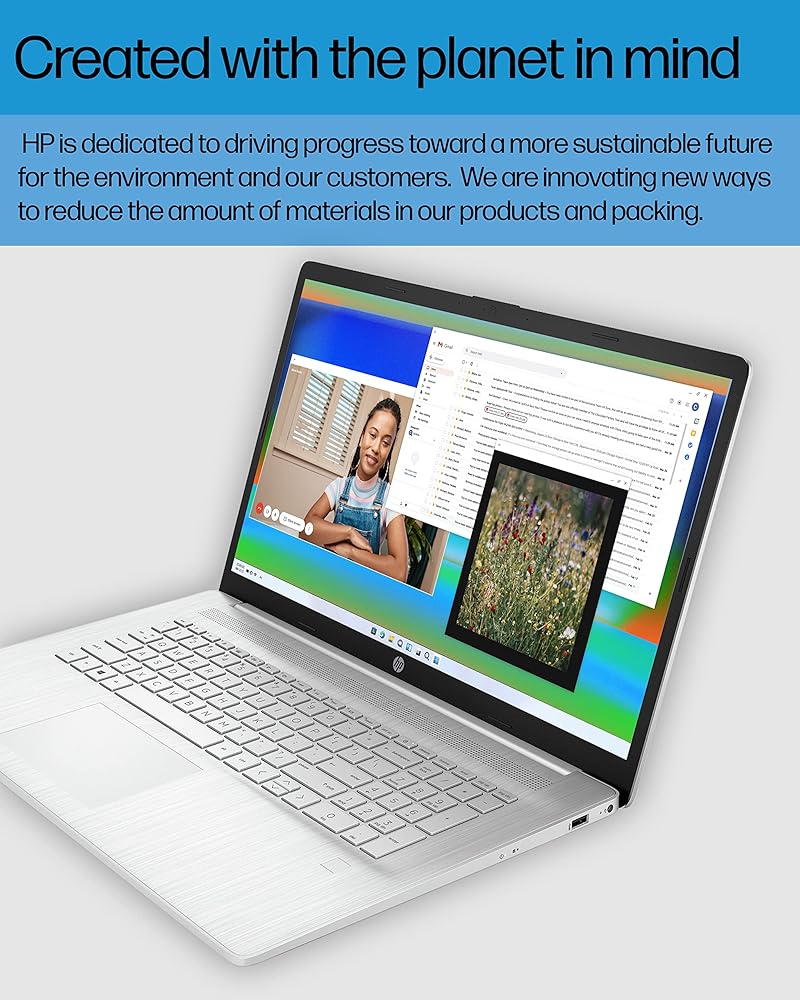Thoughtfully crafted, the HP 17 Laptop PC blends sustainability with performance and comfort. Showcase all of your favorite content in crisp HD+ resolution on a narrow-edge, glossy finish, 17.3-inch screen. Enjoy fast performance and 4K graphics thanks to the powerful combination of the quad-core Intel Pentium Silver N5030 processor and Intel UHD Graphics 605. Your HP computer laptop offers the storage you need and bandwidth you crave with a 256 GB Solid State Drive and 4 GB of RAM.