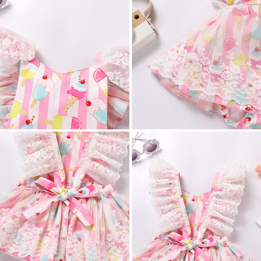 Features: Flutter Sleeve, Square Neck, Backless, 3D Butterfly/ Flower, Elastic Band at Back, Lace-up Straps, Layered Tulle, Ruffle, Snap Crotch, Elastic Leg Opening