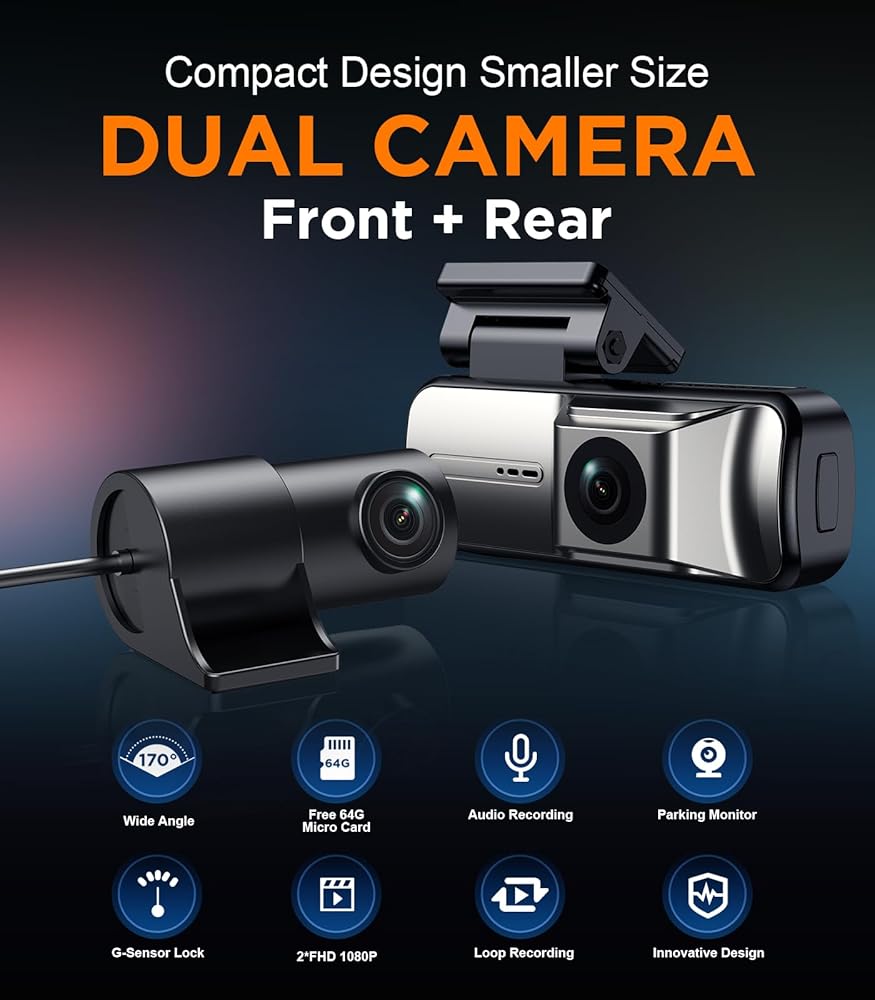 【Mini Design & Easy Installation】Dash cam with compact and mini design minimizes interference with the driver's line of sight and vehicle interior aesthetics. Installation is simple, the car camera has no extra labor costs required—simply peel off the 3M adhesive tape for effortless installation and removal. There is 7/24H technical support behind you,and we offer full 18-months guarantee and lifetime technical support. If you have any questions please let us.