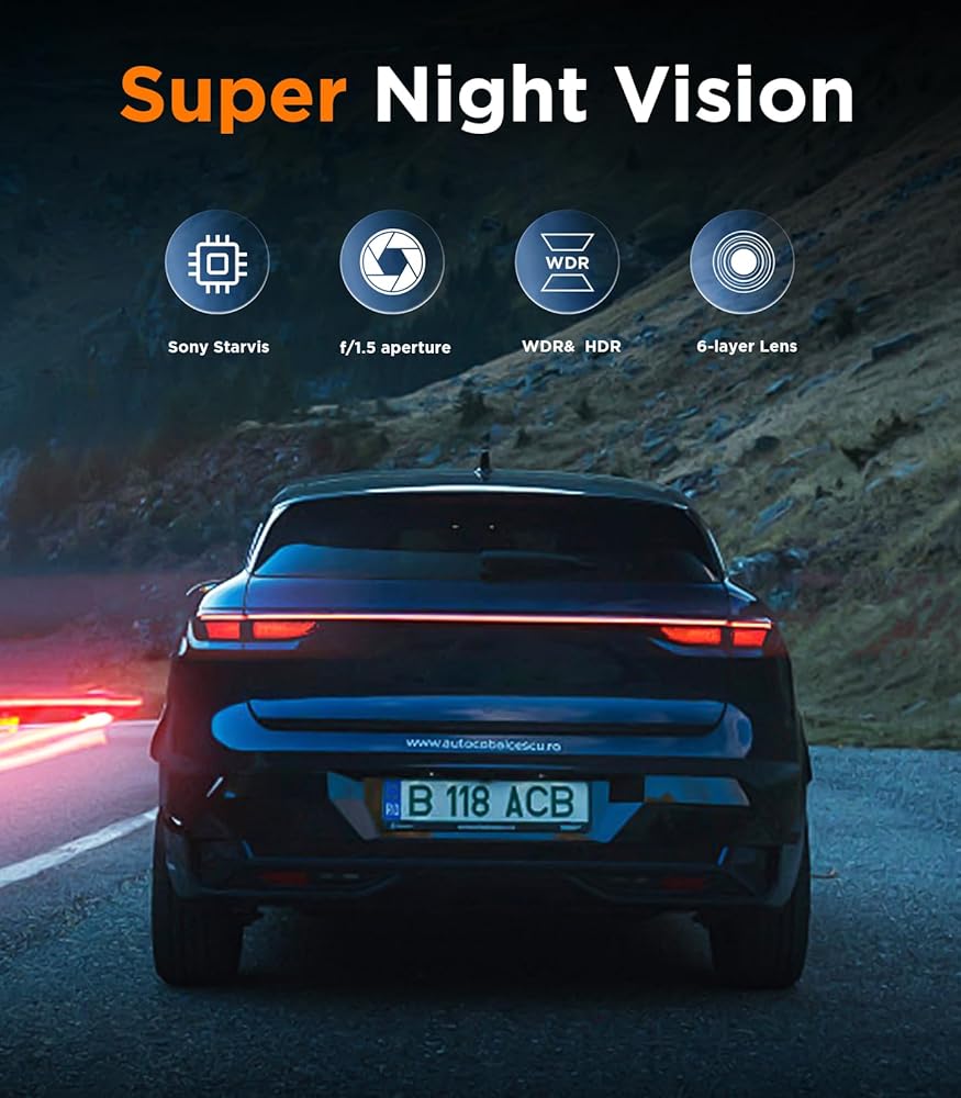 【Ultra HD Night Vision Dash Camera】The combination of F1.8 large aperture, WDR, HDR ensures the clarity of images at night. Car camera makes night shots brighter and prevents overexposure under strong light, obtains crystal-clear recording. Eliminates the need for an auxiliary light source even in low-light environments, making it easy to obtain sharp, color-accurate images.