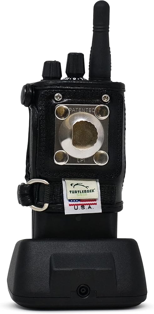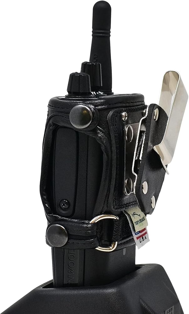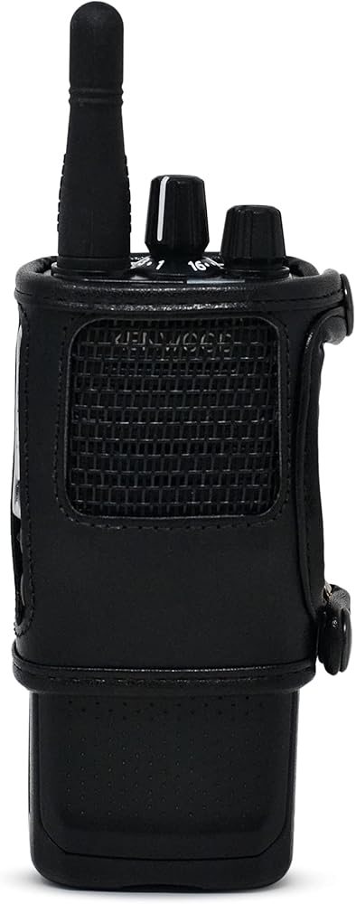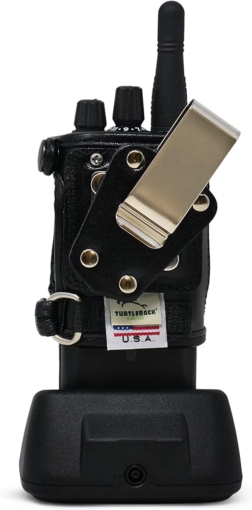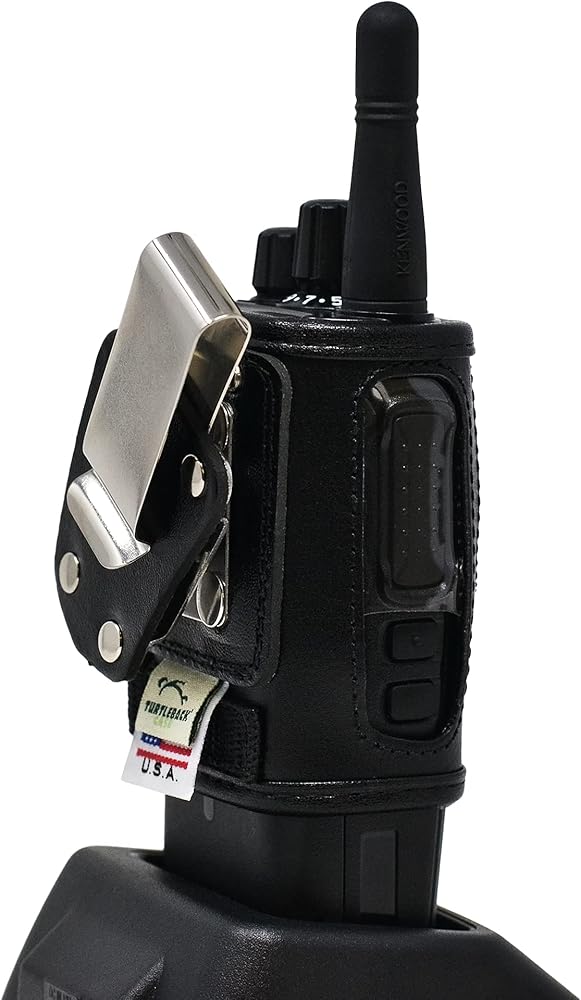 Kenwood NX1300 NEXEDGE Carry Belt Holder Case, Turtleback Holder fits Kenwood NX-1300 Series Radio Black Leather Duty Belt Holster with Heavy Duty Rotating Belt Clip