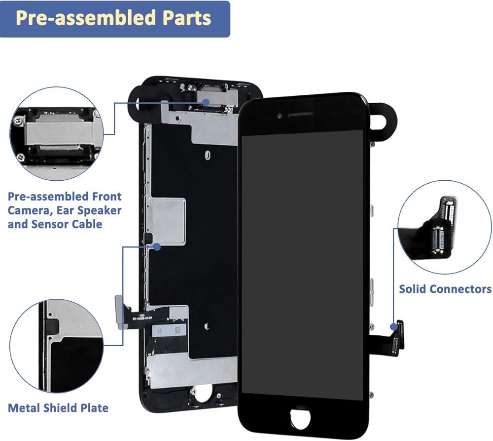 ⭐ [Upgraded Version & Easy to Install] This replacement screen includes the spare parts (front camera, proximity cable, metal shield plate, earpiece speaker), no need to disassemble those parts and assemble them to the new screen