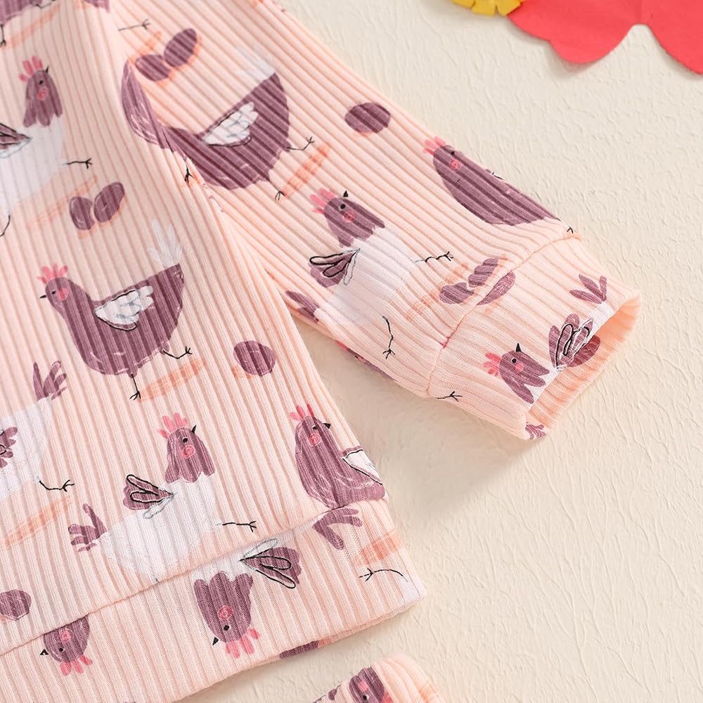 🐉🦋🐓MATERIAL: The baby girl clothes fall winter outfit, toddler baby girl outfits, baby girl winter clothes, toddler sweatshirt outfit, is made of 95% premium cotton,5% Elastane. Baby girl dinosaur clothes, baby girl butterfly outfits, baby girl chicken outfits is soft, breathable and skin-friendly, harmless to your little girl's tender skin.