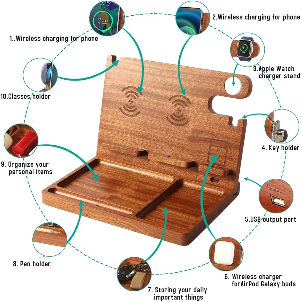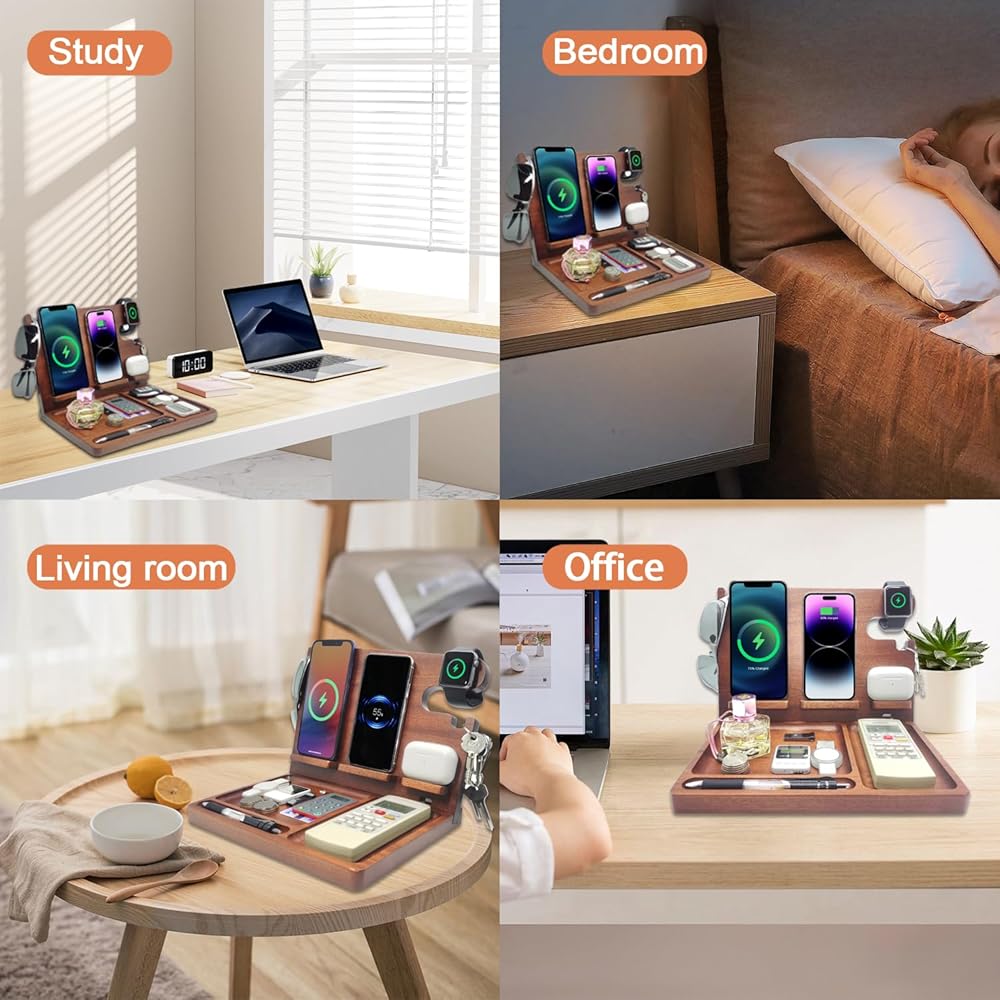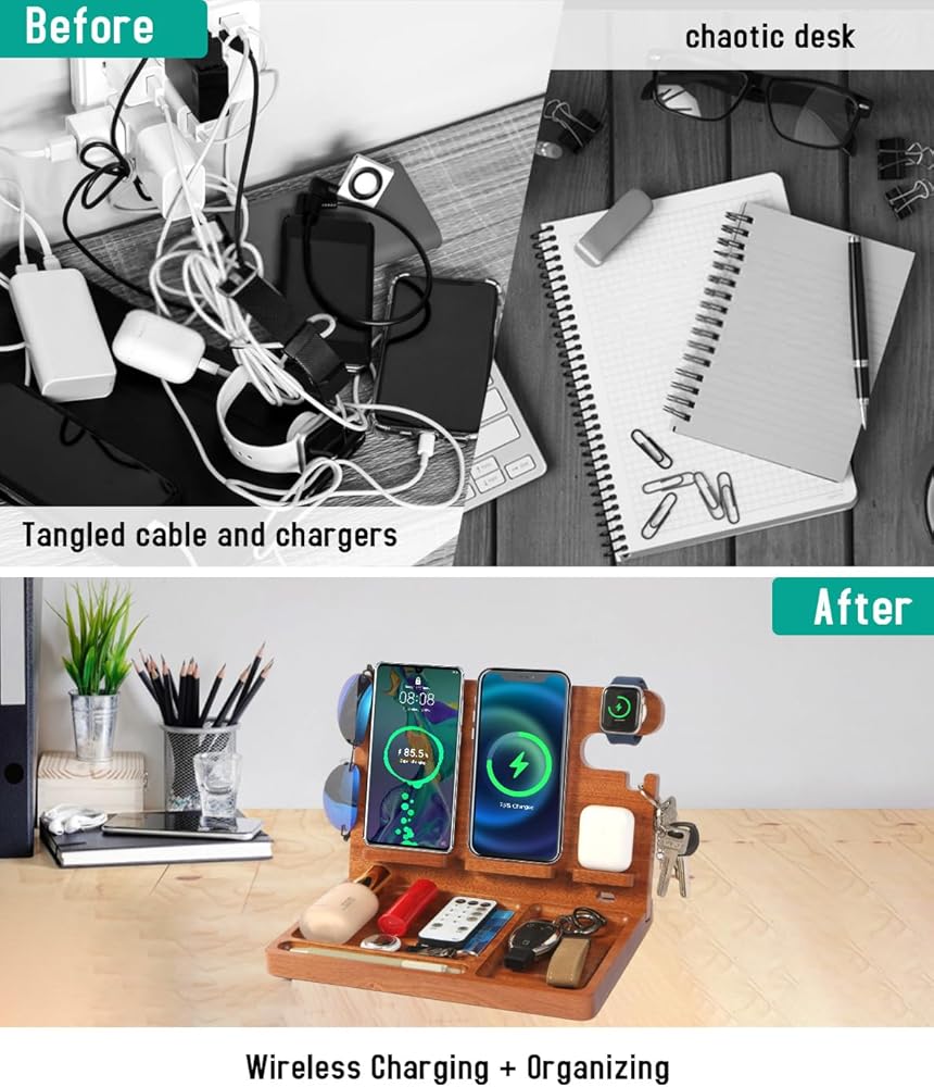 【Perfect Gifts for Men】This wireless charger stand with desk organizer is an ideal gift for dad,boyfriend,husband,grandfather and friends him or her. Suitable for birthdays, retirement,anniversary,housewarming and other special occasions, this multi-functional charging station is sure to impress.