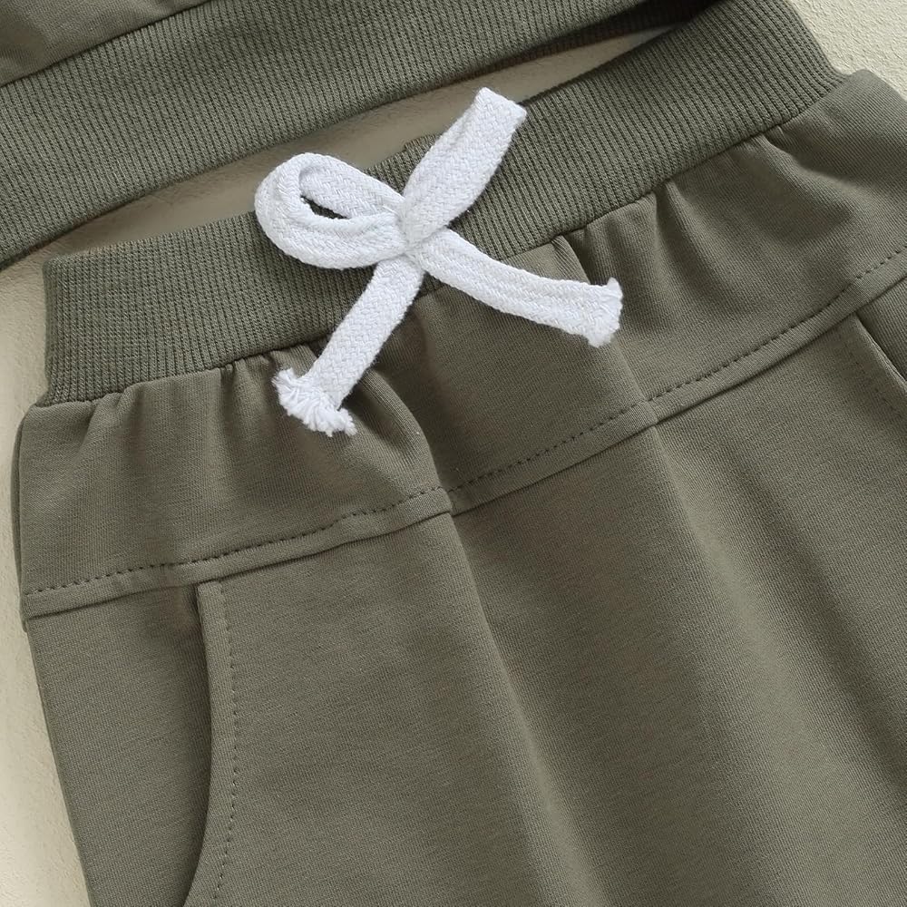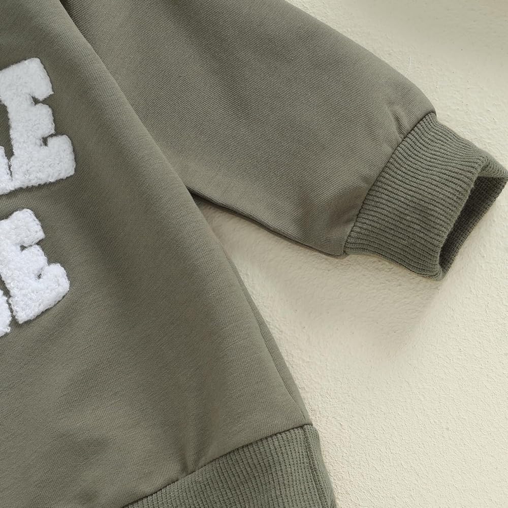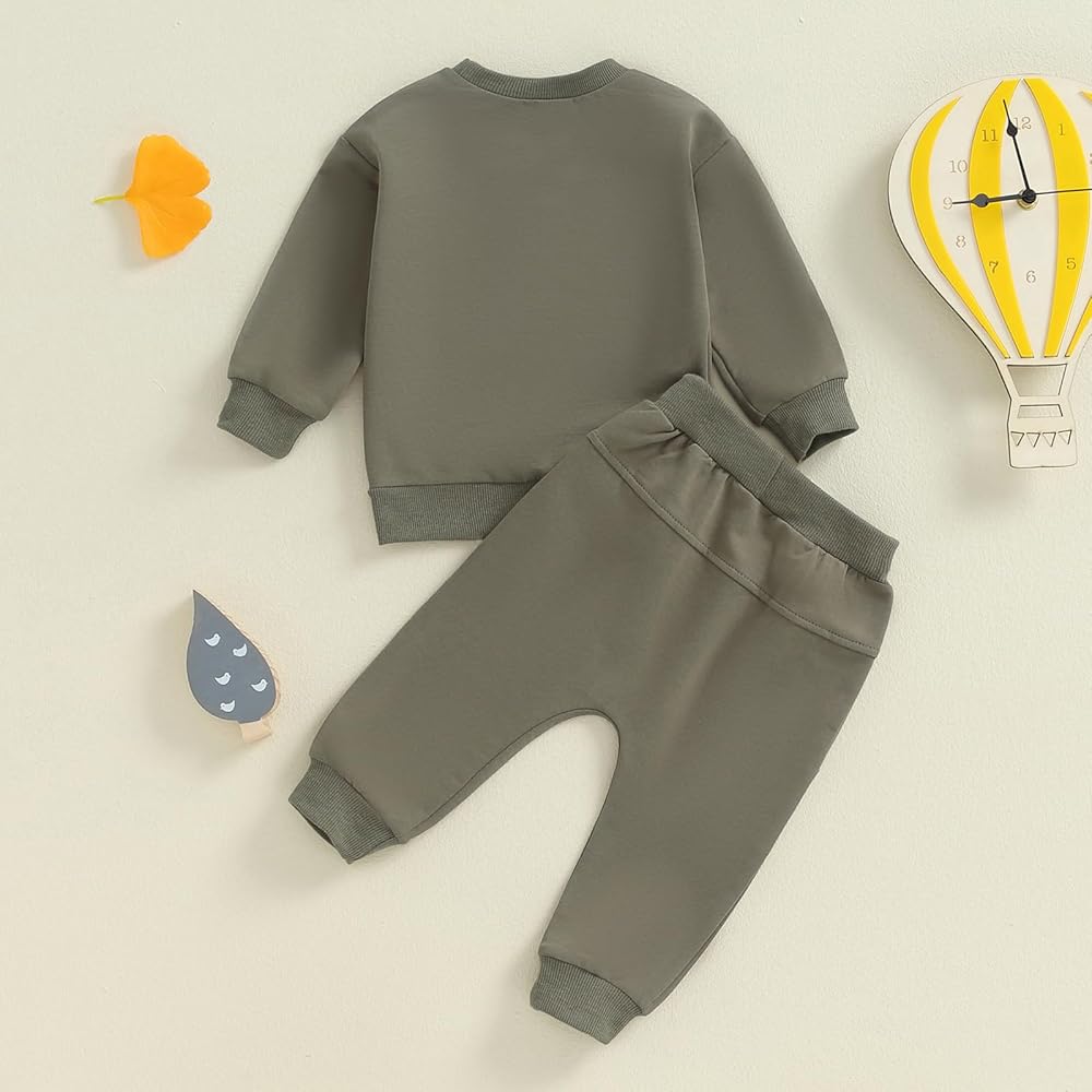 DESIGN: Two-piece toddler boys winter outfit sets, crewneck, long sleeve, letter embroidered sweatshirt pullover tops, matching with solid color drawstring long pants with two pockets, simple and cute toddler outfits for boys. Your little one will love to wear it all day round,