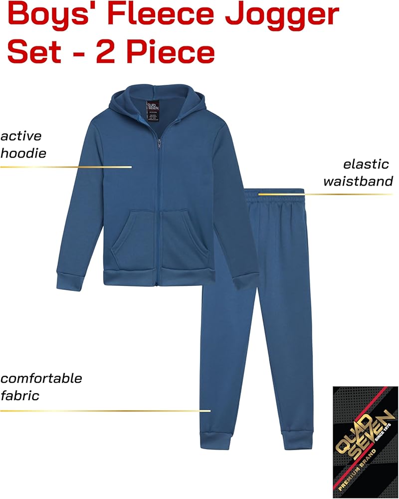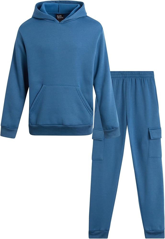 The Quad Seven Boys' Jogger Set - 2 Piece Hoodie and Joggers Little Boys Clothing Set is a perfect addition to any young boy's wardrobe. Made from extra soft fabric, this set offers both comfort and style. The set features a comfortable pullover hoodie and lightweight cargo joggers, ideal for active boys and casual wear. Wear the joggers with the matching sweatshirt for a standout outfit. Whether he's off to school or hanging out with friends, this set ensures durability without ripping or fading. The elastic waistband provides a snug fit that won't restrict movement. Available in an assortment of trendy solids, every young boy will appreciate having this jogger set in his collection. Easy to care for, simply machine wash and tumble dry.