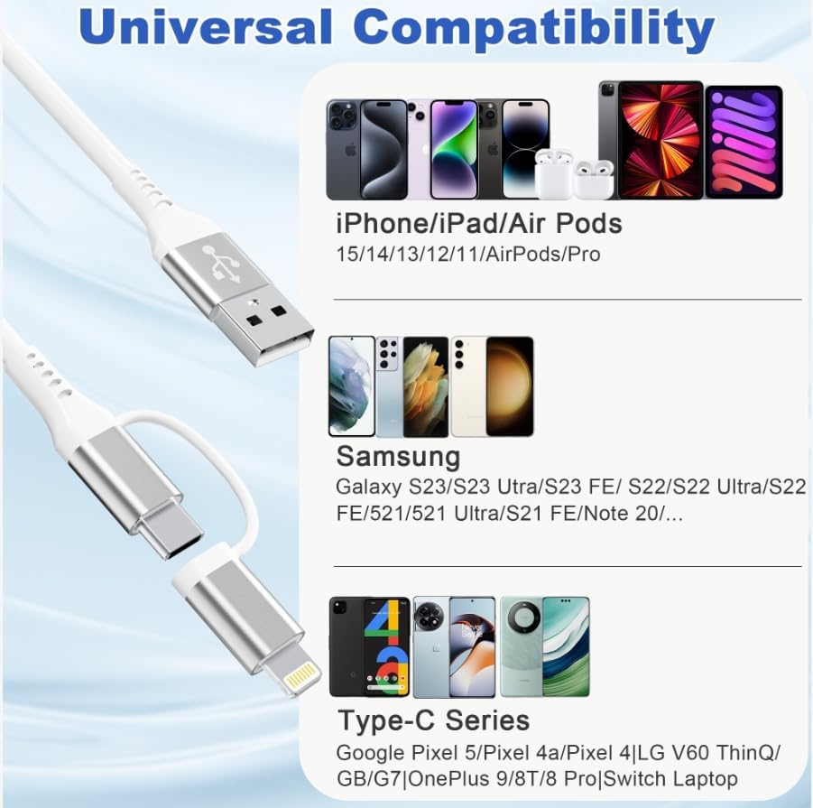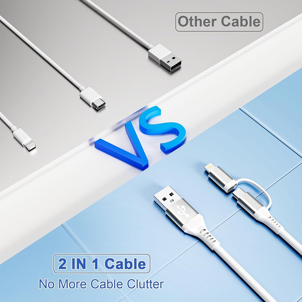 【60W Fast Charging & Data Transfer】 Type-C port power up to 60W, Lightning port power up to 27W, can charge iPhone 15 from 0% to 60% in just 30 mins. USB C/USB A to Lightning/USB C cable supports data transfer at up to 480Mbps. If you want to achieve fast charging, please use a USB-C PD fast charger of 20W and above. The actual charging speed depends on your device and charger