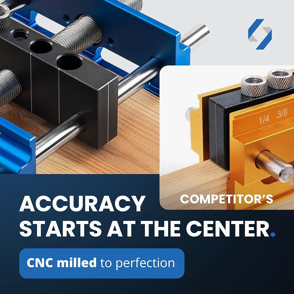 Durable Aluminum Alloy Construction: Crafted with excellence in mind, Eleon's exceptional dowel jig is made from high-quality aluminum alloy metal. Built to withstand the demands of full-time woodwork professionals, DIY enthusiasts, contractors, and hobbyists, this tool ensures longevity and reliability in every use.