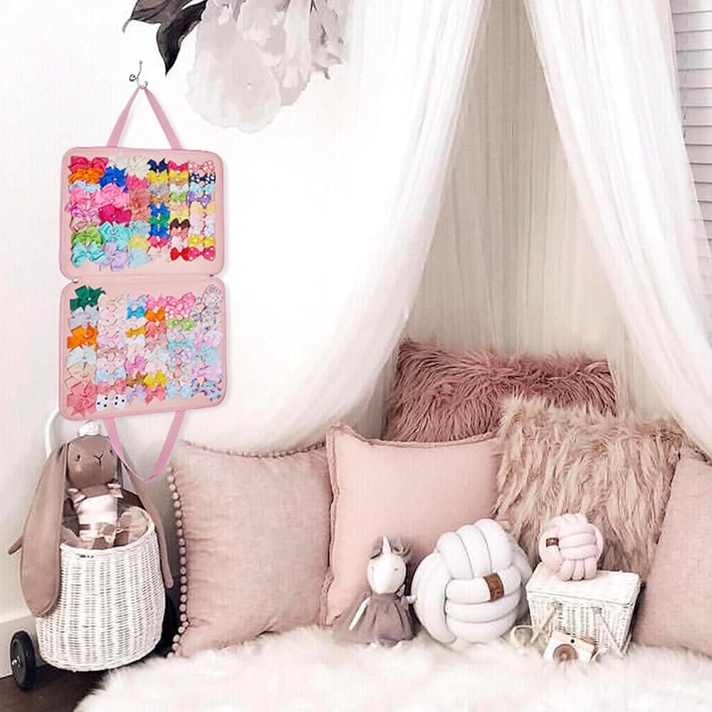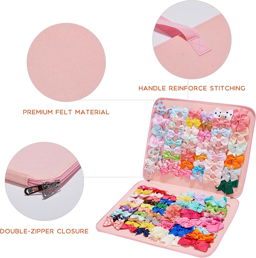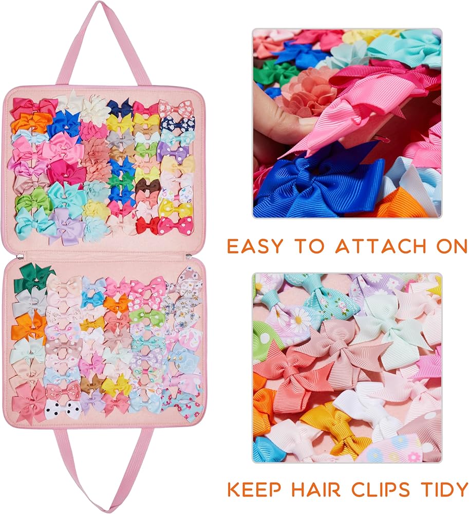 ✿Portable & Hangable: Crafted with strong carrying handle, HUHYNN hair accessories storage bag is convenient to take girls hair supplies for trip and keep them organized and safety! Also, the bows holder allows you fully opening to hang on wall, door, closet when using.