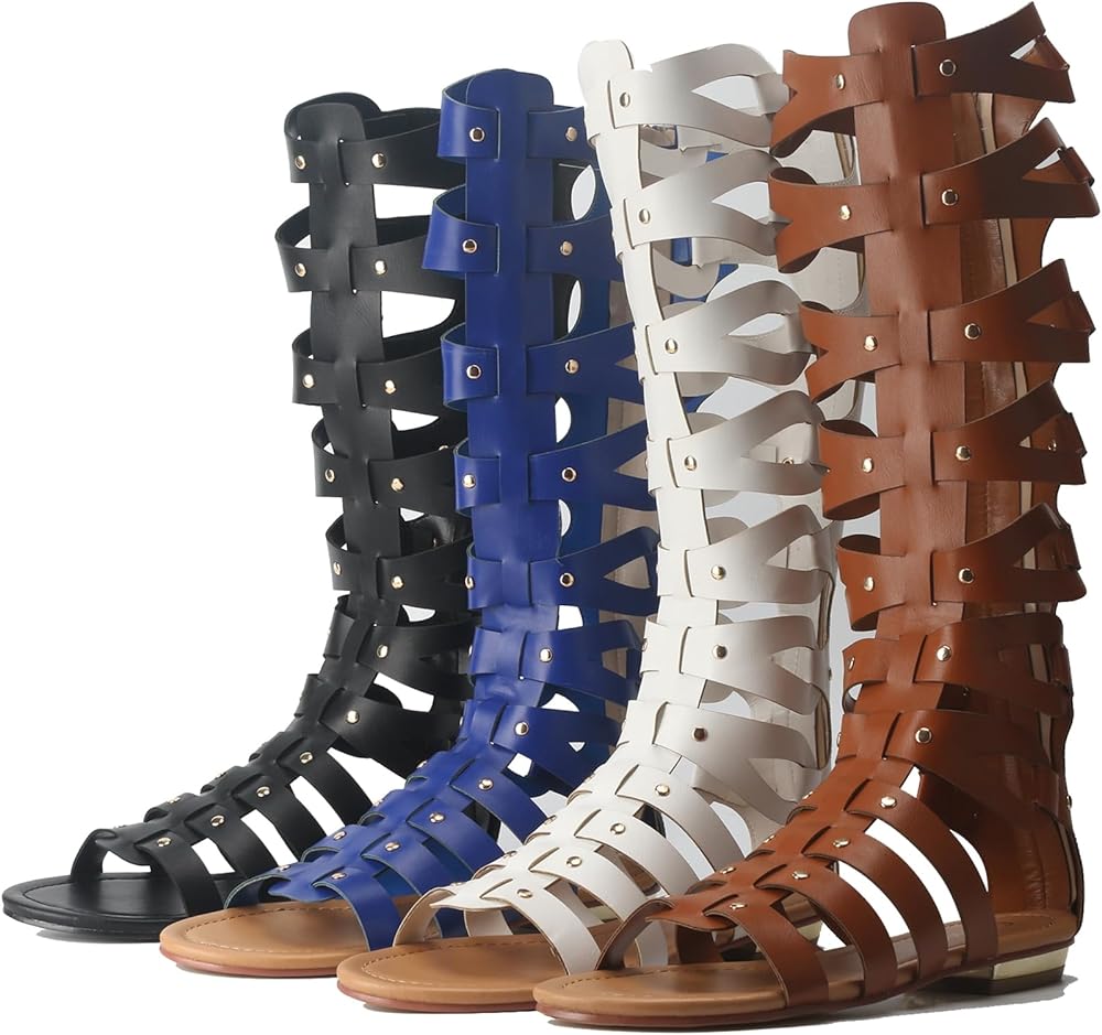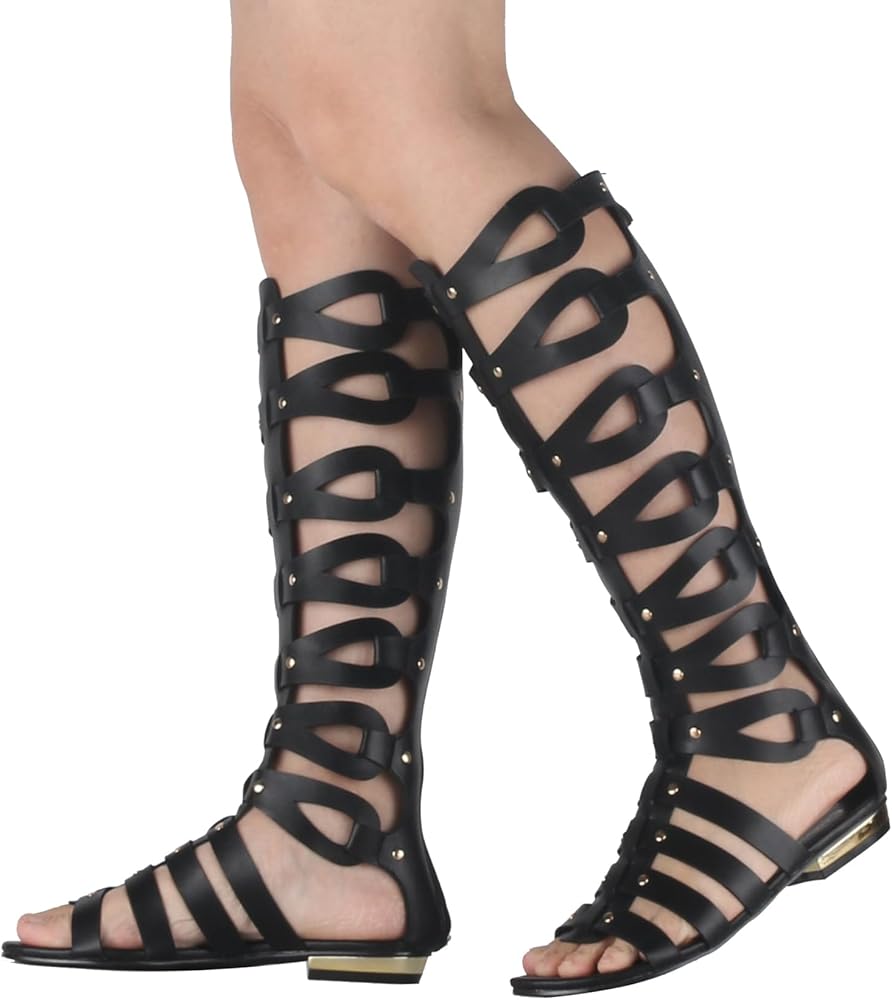 Hanfike Knee High Sandals for Women Gladiator Cut Out Summer Roman Boots
