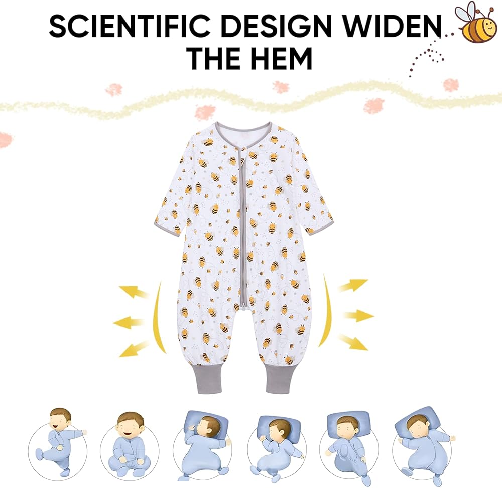 CONVENIENCE AND SAFETY: The 3-Way zipper: Unzips from the top for easy placing baby in sleep bag, unzips from the bottom for easy diaper changing. The spacious leg area is suitable for the baby's natural frog leg posture, which is conducive to the baby's hip development.