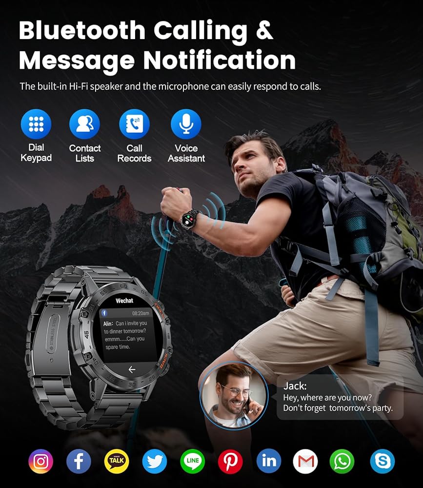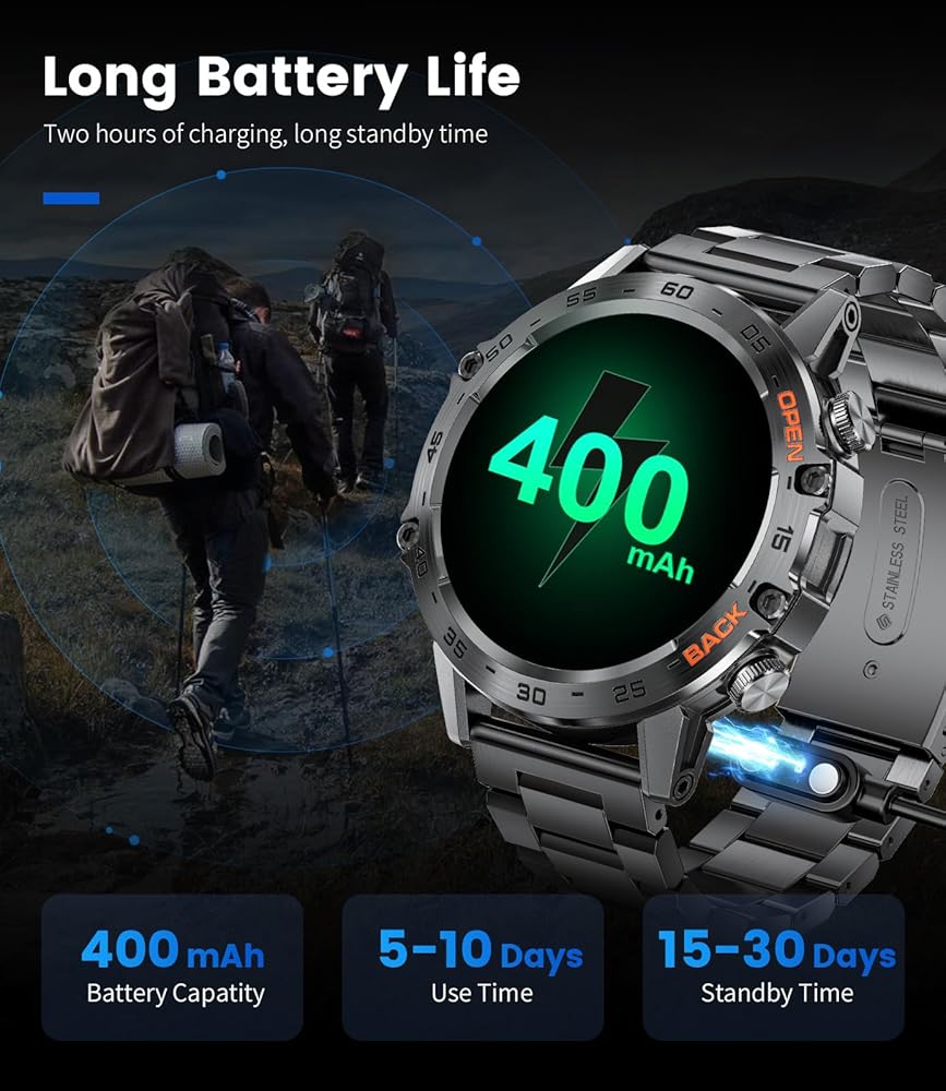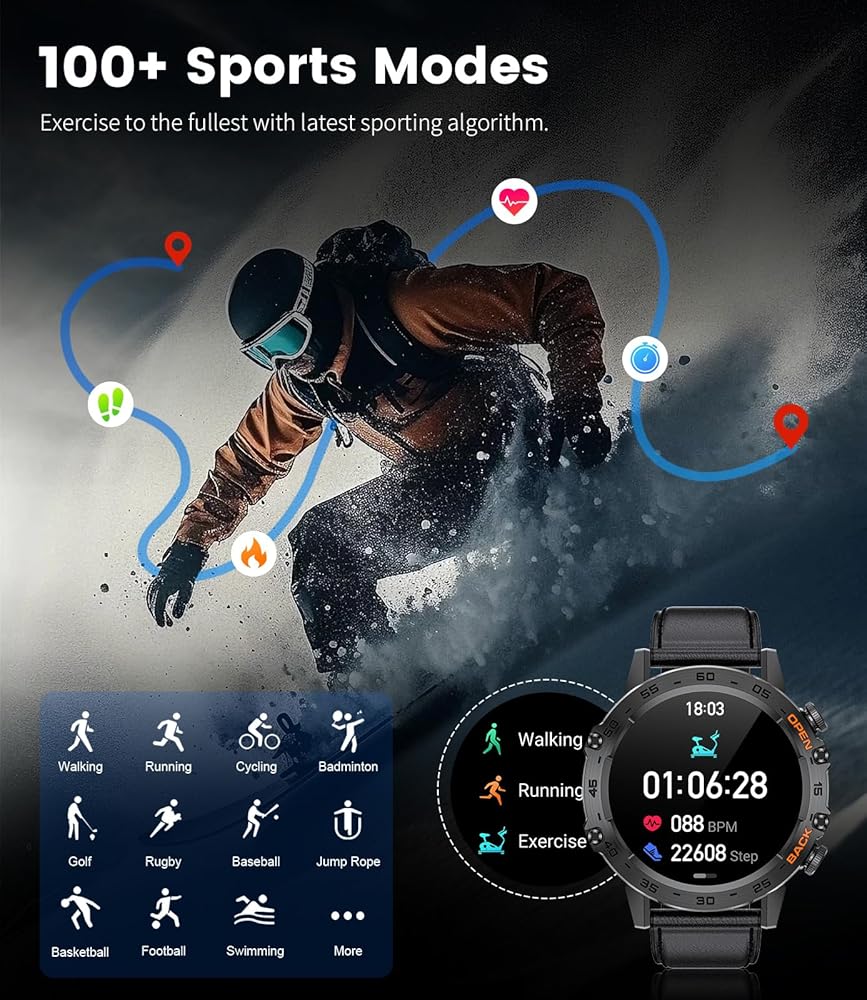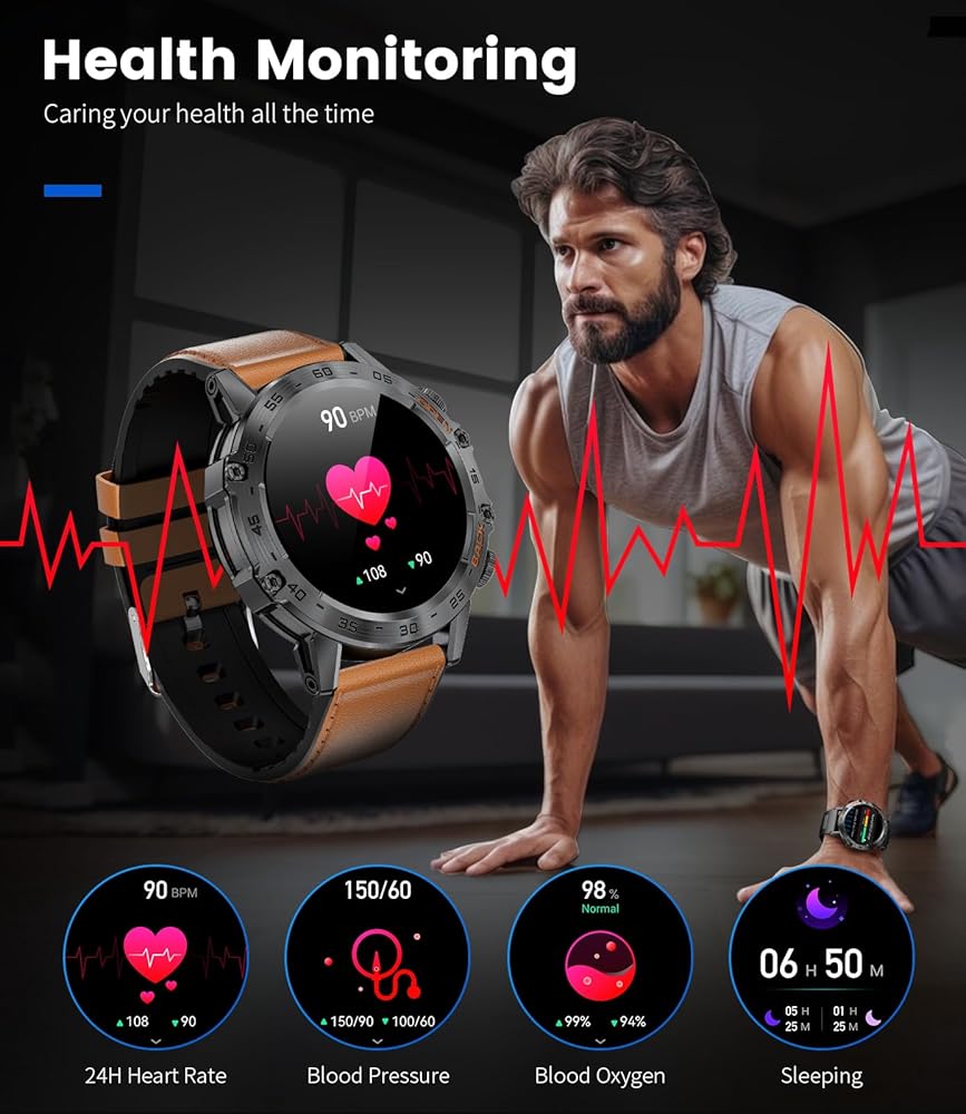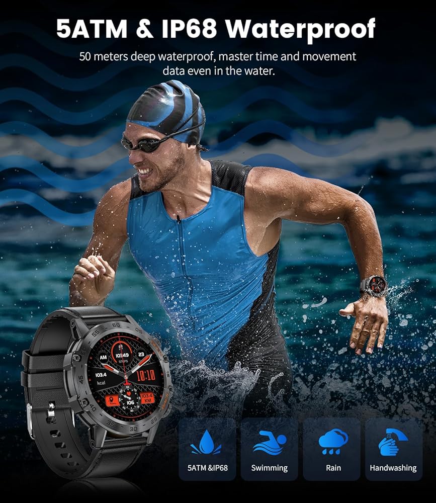 【IP68 Waterproof Rating】The military smart watches for men are IP68 certified waterproof, offering excellent protection against water, sweat, and daily weather conditions. the tactical watch is safe to wear while washing hands or in light rain, but fully submerging the mens smart watch in water or exposing it to high humidity vapor environments is highly discouraged.
