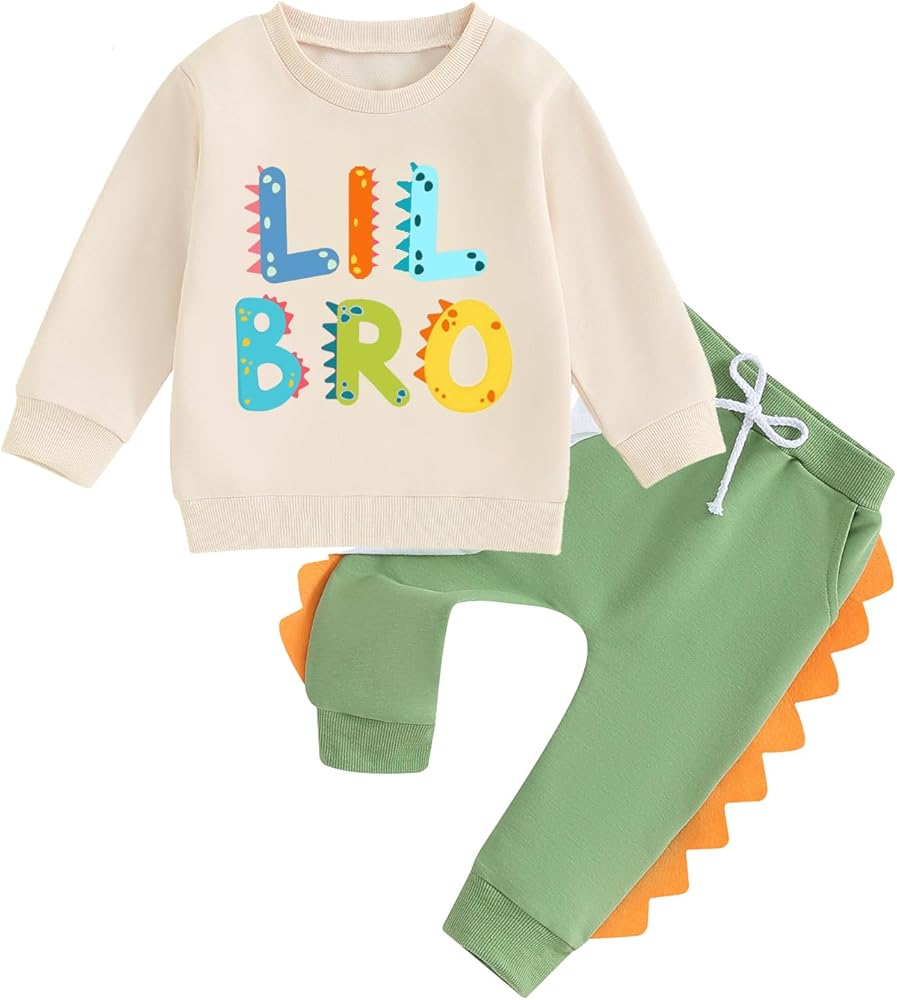 🦖SIZE: Multiple sizes Little Brother: 0-3-6-12 Months. Big Bother: 1-2-3-4 Years. Please refer to the size measurement before ordering the infant/toddler baby boy fall clothes brother matching outfit.