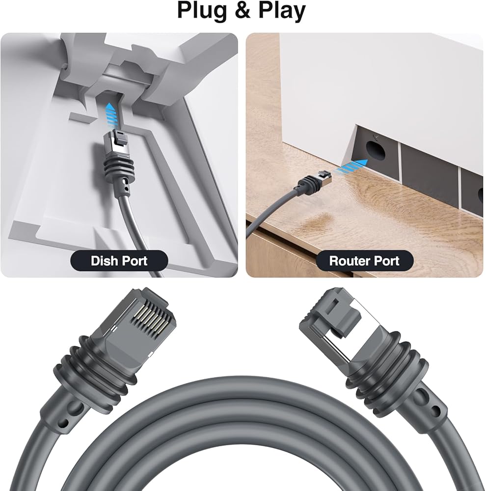 • High Speed Transmission: Cable for starlink gen 3 with 26AWG copper wire and can delivers data transfer speeds of up to 1200Mbps, ensuring seamless transmission. High quality Cat 6 cable much faster than Cat 5e Cat 5 Cables.
