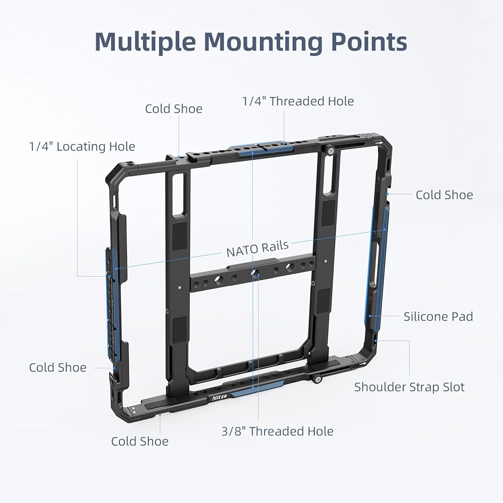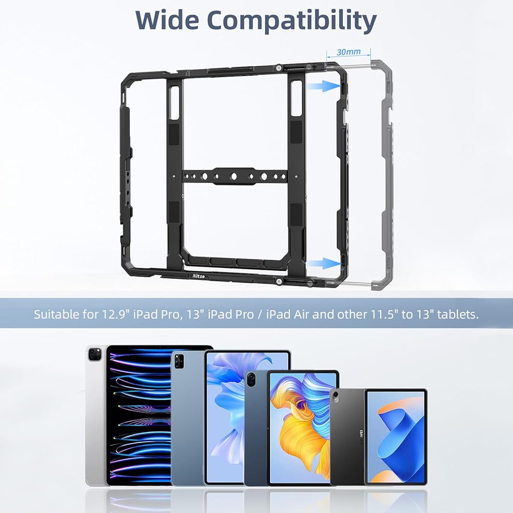 High Compatibility: Nitze T-TC02A tablet gaiola fits iPad Pro 13” 2024, iPad Air 13” 2024, iPad Pro 12.9” 2022, iPad Pro 12.9” 2021, iPad Pro 12.9” 2020, iPad Pro 12.9” 2018, iPad Pro 12.9” 2017, iPad Pro 12.9” 2015 and other 11.5” to 13” tablet