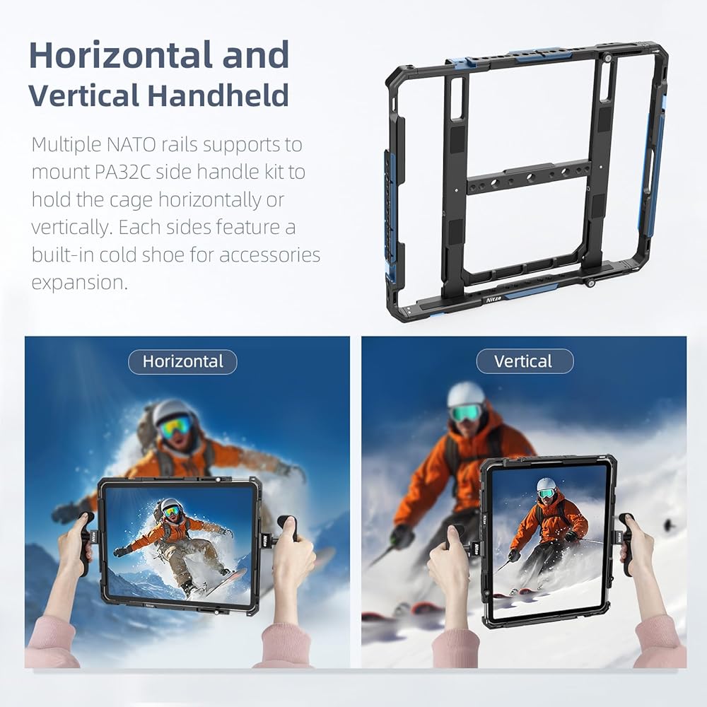 Built-in NATO Rails & Cold Shoes: The iPad gaiola features multiple NATO rails and cold shoes around the gaiola; The NATO rails allow you to achieve horizontal or vertical shooting with Nitze PA32C side handle kit with NATO clamp