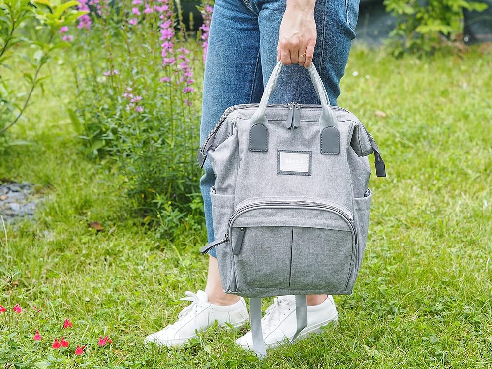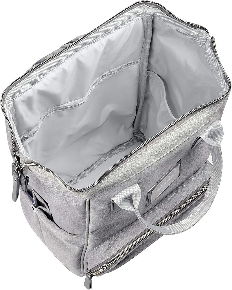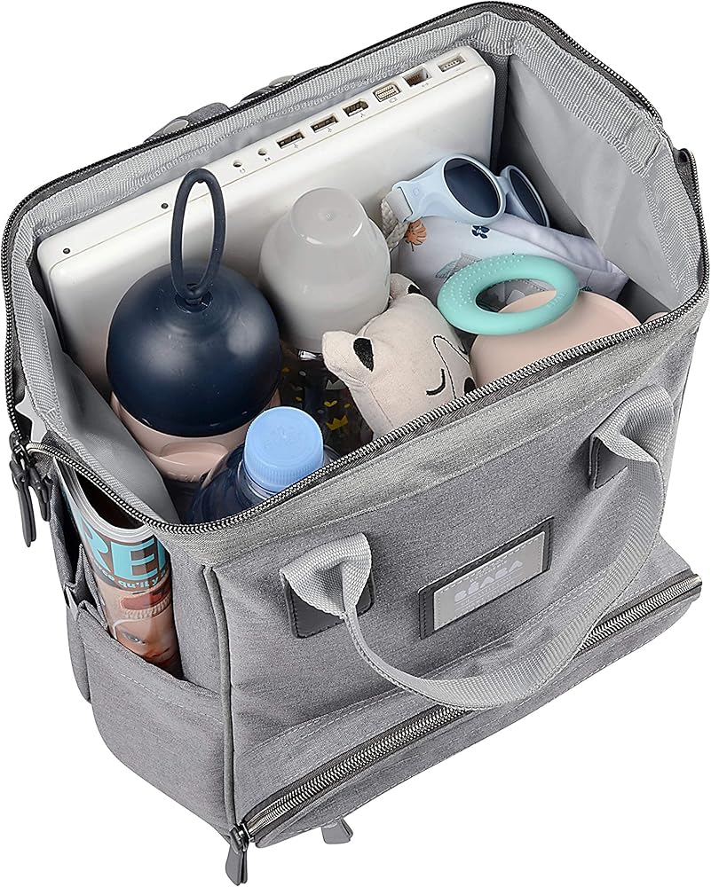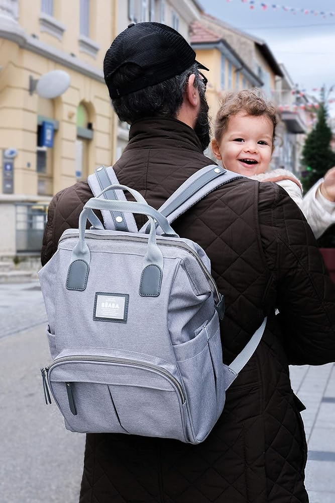 Adjustable, padded straps for comfortable carrying aid in proper weight distribution. Top handles for carrying by hand. Stroller bag strap allows you to easily hang diaper bag backpack onto stroller. 1 main compartment and 8 internal & external compartments for baby bottles, baby clothes, diapers and parents' gear.