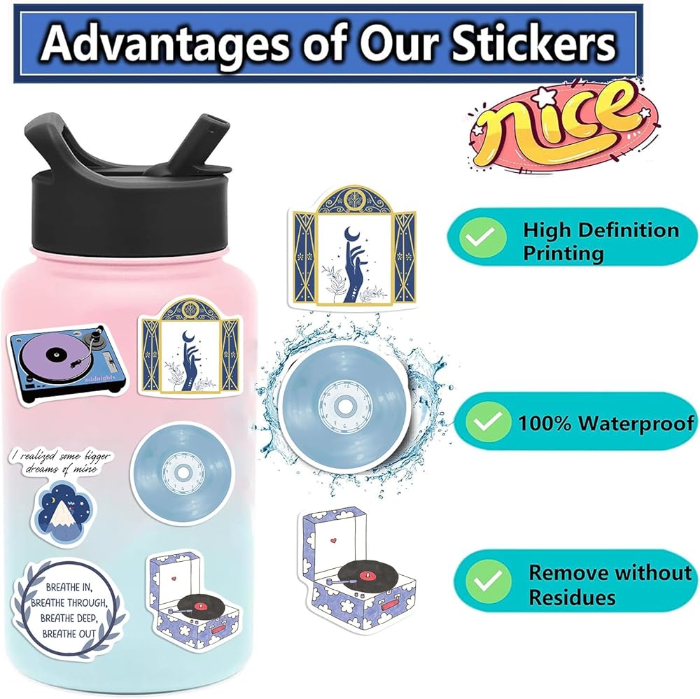 100Pcs Stickers for Water Bottle, Lyrics Stickers Waterproof Non-Repeating Tear-Resistant Music Album Reusable Stickers for Kids Women Adults Teen, Vinyl Stickers