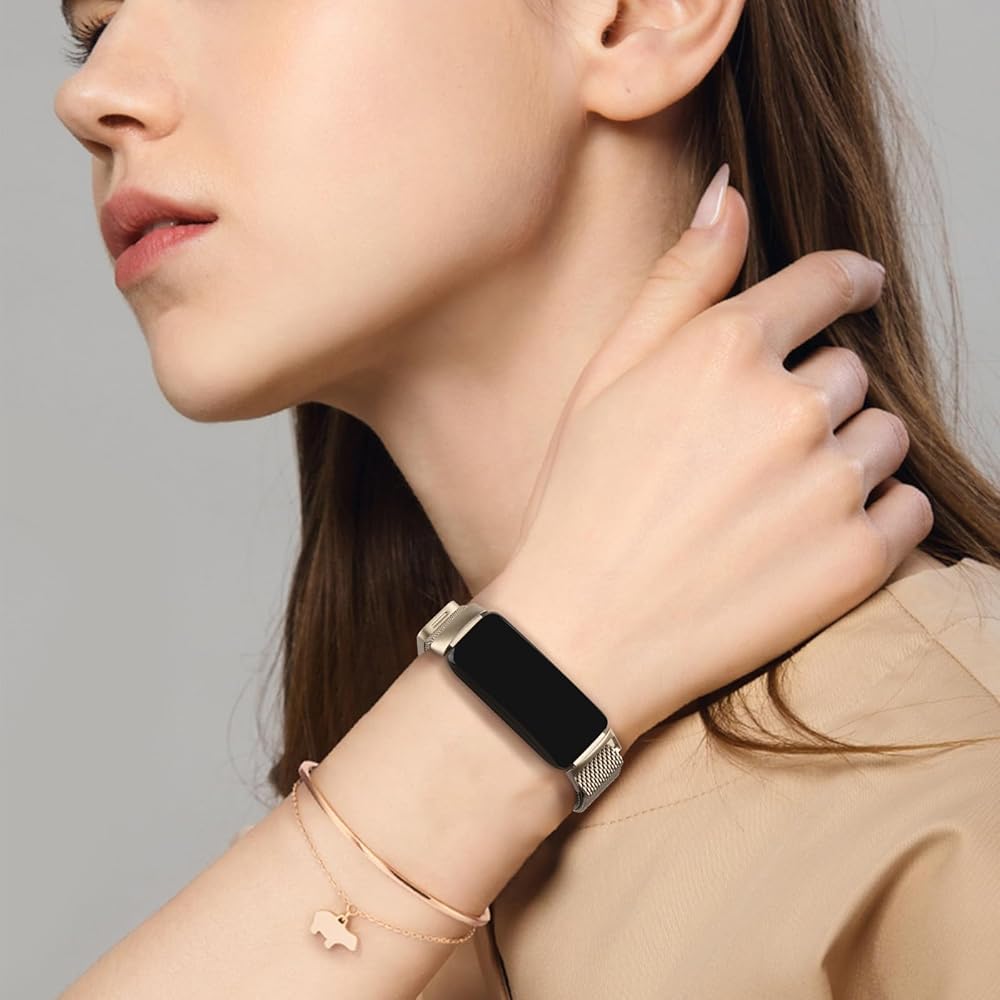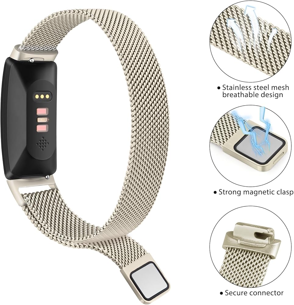 Mugust Metal Magnetic Band Compatible with Fitbit Inspire 2 bands / Fitbit Inspire 2 /Inspire HR bands / Fitbit Inspire bands for Women Men, Stainless Steel Mesh Loop Adjustable Wristband Replacement Strap for Fitbit Inspire 2 /Inspire HR / Fitbit Inspire