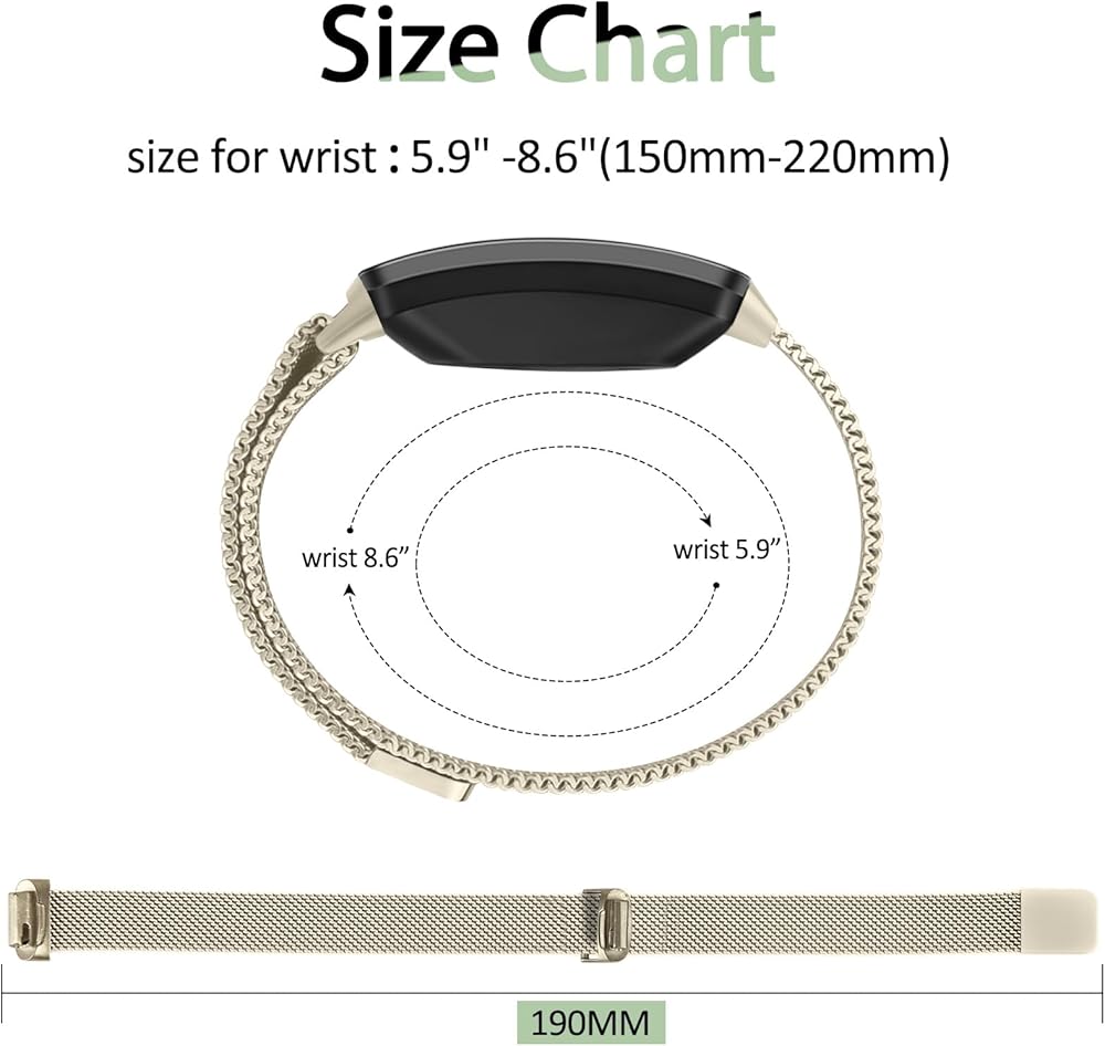 --With design of magnet clasp, just easily stick to lock your watch band, very easy to adjust the length of the Fitbit Inspire 2 /Inspire HR bands / Fitbit Inspire strap;