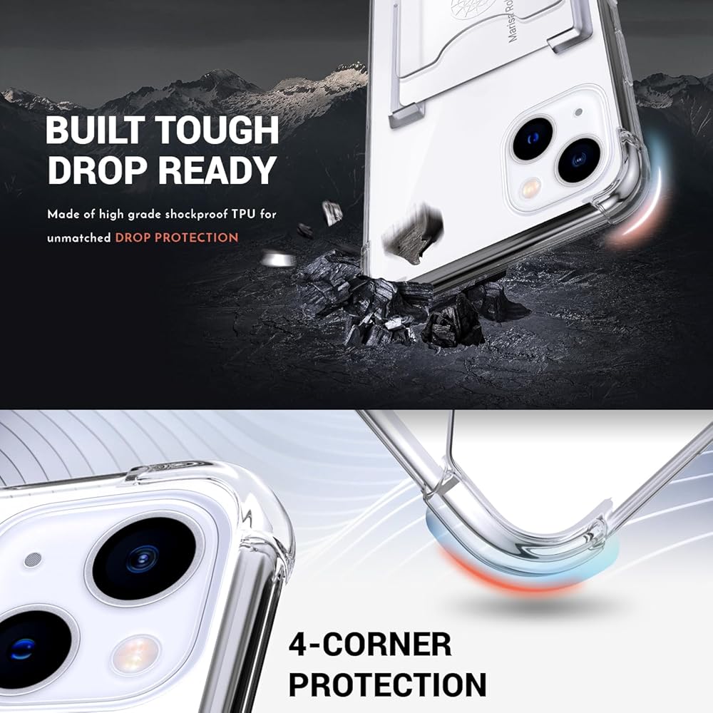 Shields Up Designed for iPhone 15 Case, Minimalist Wallet Case with Card Holder, [Drop Protection] Slim Protective Cover for Apple iPhone 15 (6.1 inch) - Clear