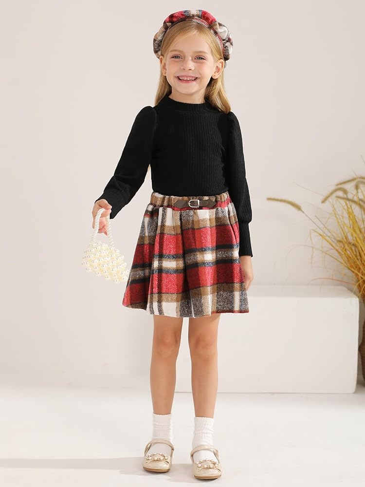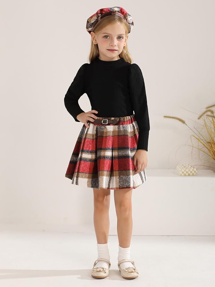 CUTE SKIRT SET:The design of this mini skirt set is full of sweetness and liveliness for little girls, and the cute belt makes them even cuter. And the knitted top features an exquisite half turtleneck design, which not only provides extra warmth for girls, but also showcases an elegant temperament.