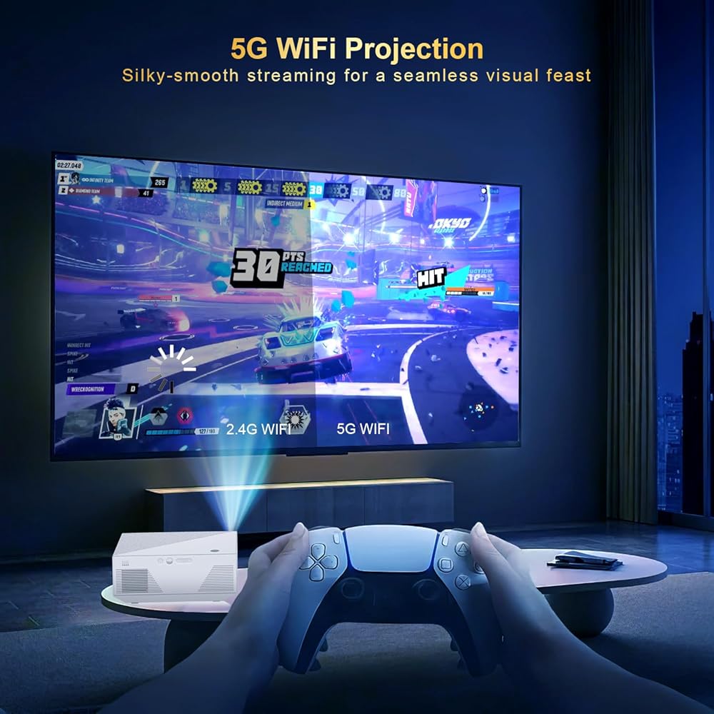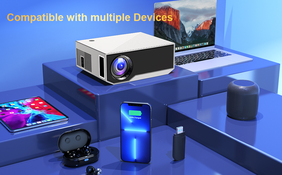 【2.4+5G Wifi and Bluetooth 5.1 Projector】Projector with wifi and bluetooth, with built-in upgraded speaker, you can enjoy a cinematic audio-visual experience without connecting external speakers. Also, this portable projector built-in Bluetooth 5.1 technology to make the audio synchronization faster and more stable. With this Bluetooth projector, you can connect your ideal Bluetooth speakers or headphones wirelessly at any time to get more wonderful sound'