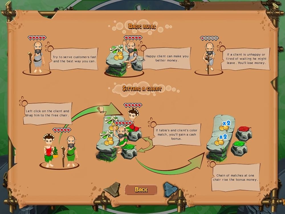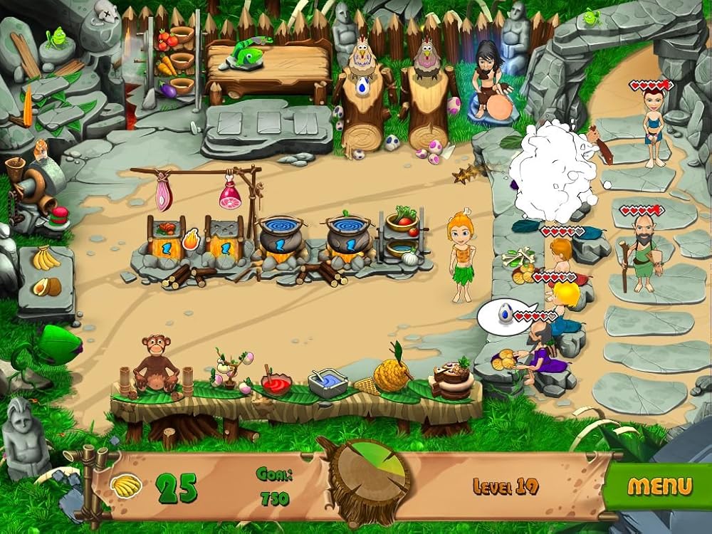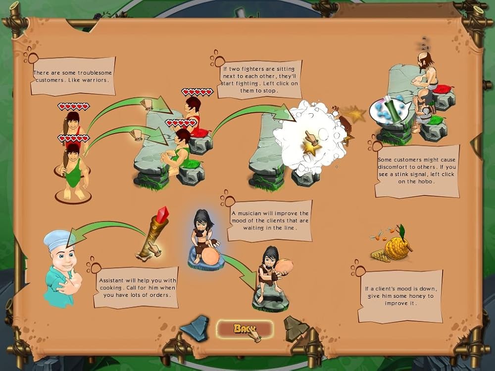مقهى العصر الحجري لا يستطيع الطباخ الجيد إنقاذ الموقف فحسب، بل يمكنه تغيير مصير قبيلة بأكملها! قم بإدارة المقهى الخاص بك في عصر العصر الحجري لإنقاذ قبيلتك من الجوع وكسب بعض النقود القبلية!