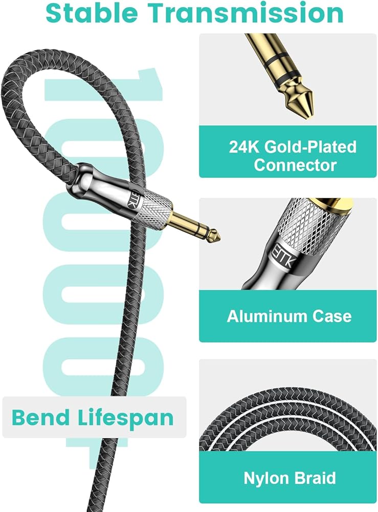 Strong and Durable:The 1/4 inch headphone extension cable features a braided cable jacket for durability and tangle prevention, and over-molded strain relief for increased durability.