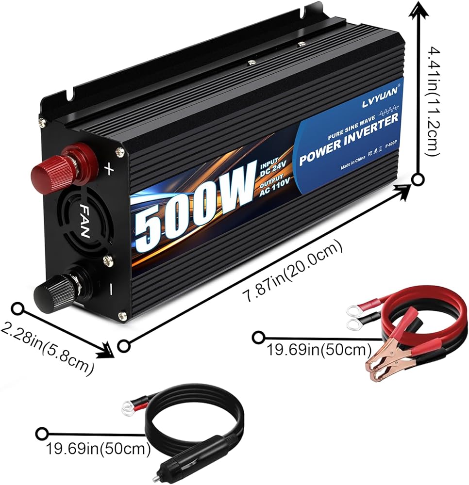 𝑯𝒊𝒈𝒉 𝑸𝒖𝒂𝒍𝒊𝒕𝒚 𝑷𝒖𝒓𝒆 𝑺𝒊𝒏𝒆 𝑾𝒂𝒗𝒆 𝑶𝒖𝒕𝒑𝒖𝒕: LVYUAN Power Inverter provides continuous and stable 500W pure sine wave power, 1000W peak power with 2 AC outlets, 2 USB ports, easy to power multiple devices at the same time.