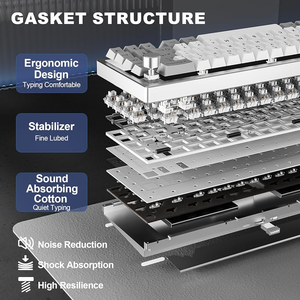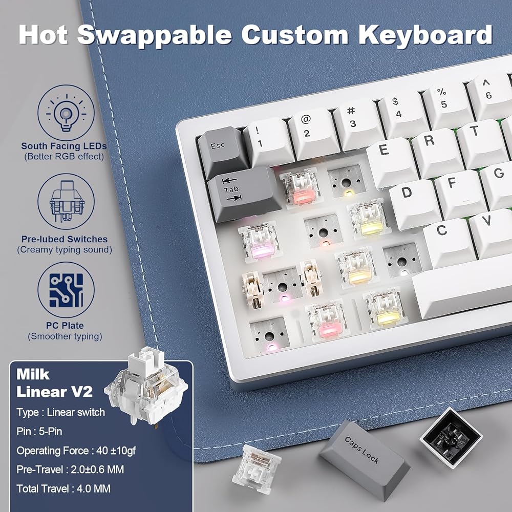 Gasket Mount Creamy Keyboard: The hot swappable keyboard features a gasket mount structure that ensures vibration dampening and sound reduction, creating a comfortable and thocky typing. Compatible with both 3-pin and 5-pin switches, this keyboard comes pre-lubed switches and stablizers for a satisfying creamy sound. It features a Flex-Cut PC Plate and 4-layer sound fillingss, perfect for enthusiasts looking to customize their creamy keyboard with high-quality components.