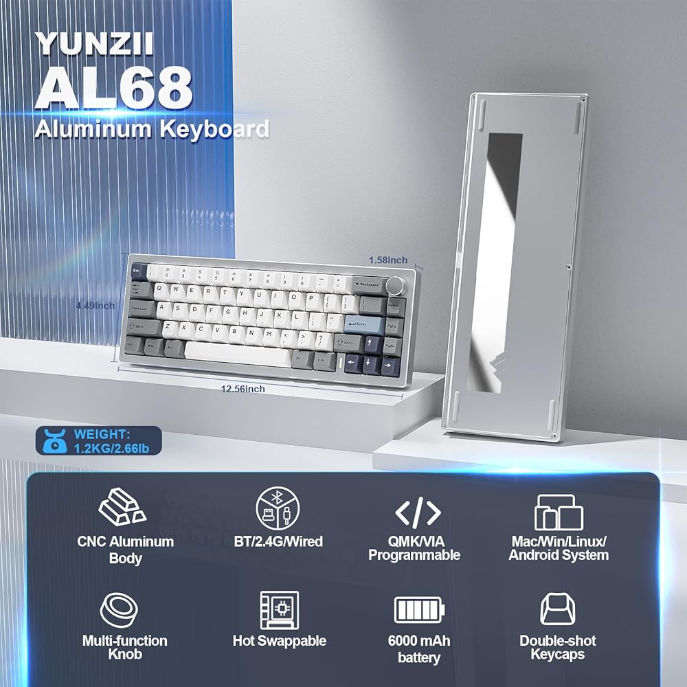QMK/VIA Custom Keyboard: Unlock endless customization possibilities with the YUNZII AL68's full QMK/VIA support. This programmable keyboard allows users to remap keys, create macros, and personalize backlighting with ease. Compatible with Mac, Windows, and Linux, this qmk/ via wireless custom mechanical keyboard is ideal for gaming and professional work. Take control of your keyboard layout and enjoy the ultimate in user-defined functionality.