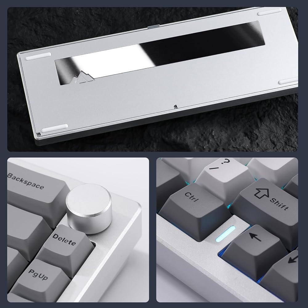 Aluminum Mechanical Keyboard:YUNZII AL68 aluminum keyboard is crafted from premium anodized aluminum for unparalleled durability and a superior typing experience. This 60% keyboard features 68 keys and a metal knob for easy volume and RGB control. The glossy back panel and corrosion-resistant design make it ideal for both gamers and professionals seeking a high-quality, long-lasting mechanical gaming keyboard.