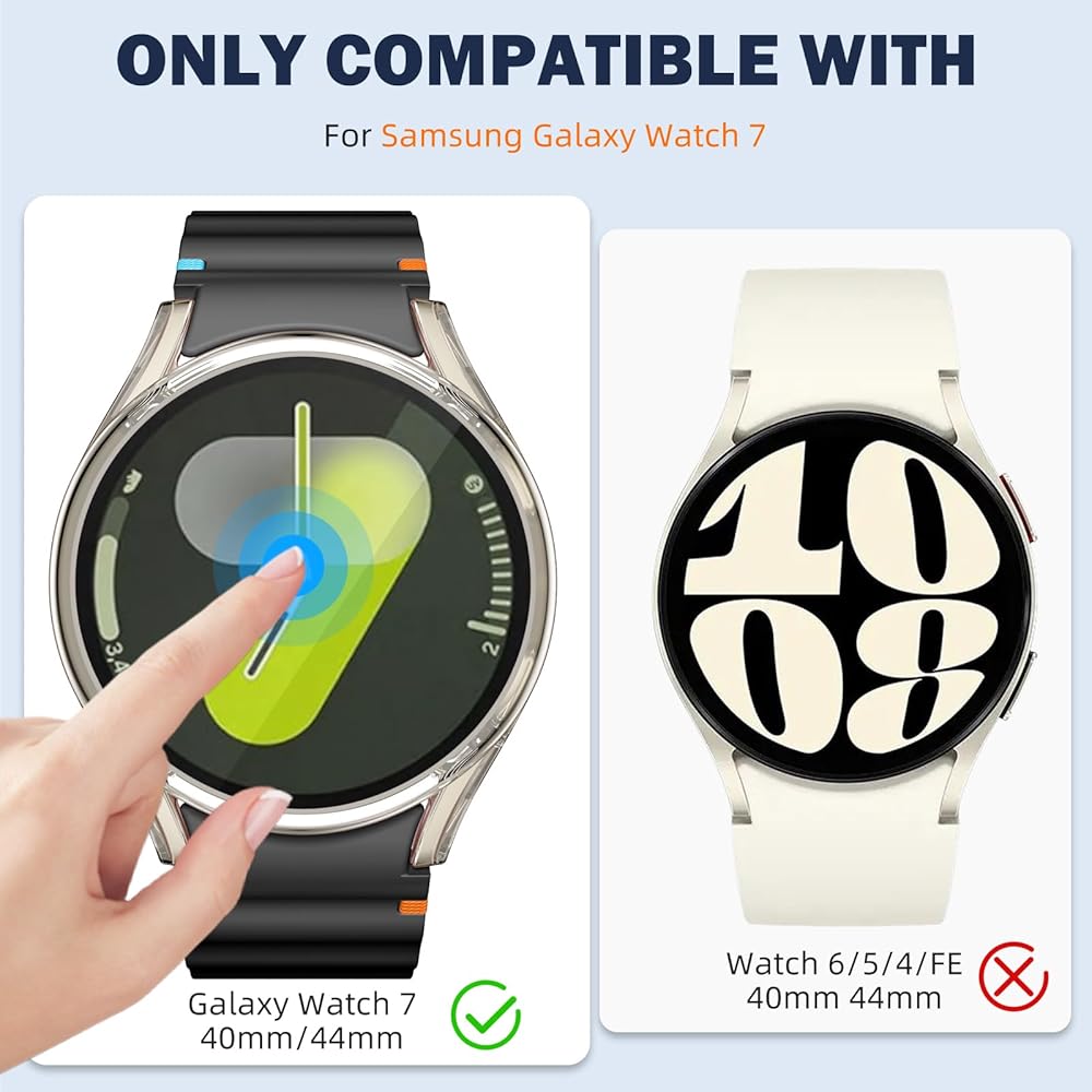 Please Check Model Size Before Order: This screen protector case is specially only designed compatible with Samsung Galaxy Watch 7 40mm (SM-L300NZ) 2024 release Smartwatch! NOTE: Not compatible with Samsung Smart Galaxy Watch 7 44mm 2024, Galaxy Watch Ultra 47mm 2024 or other models.(Watch is not included)