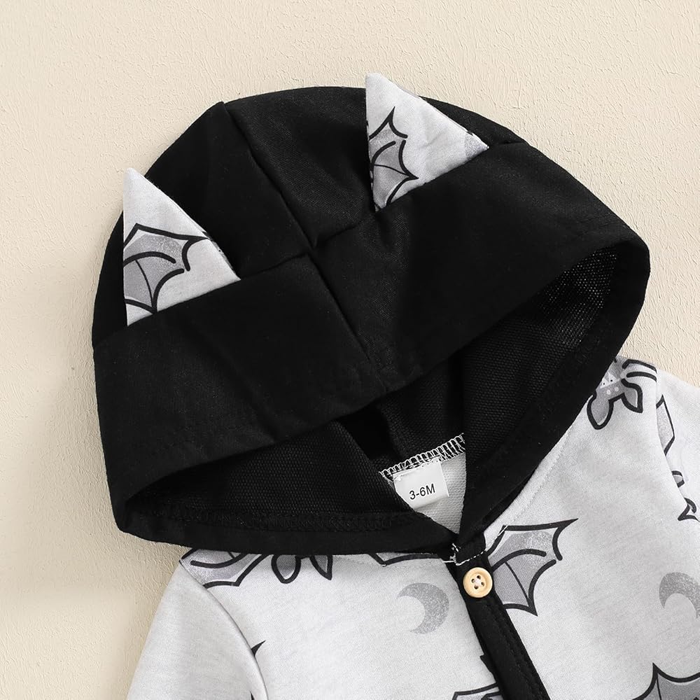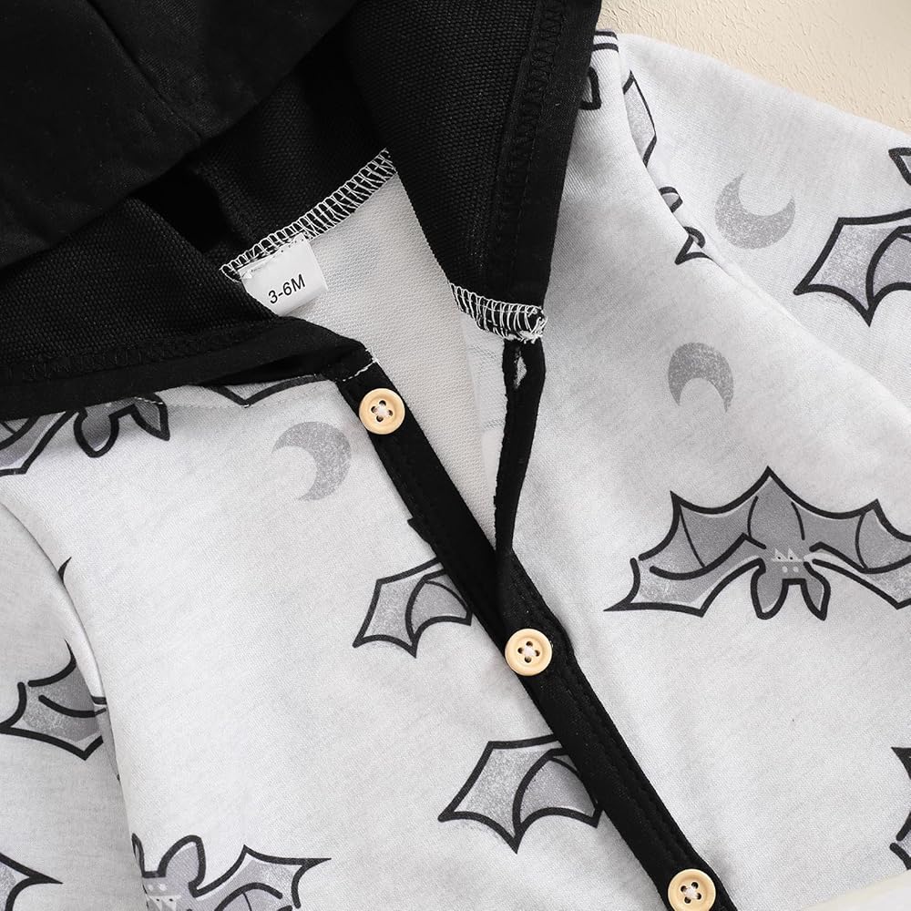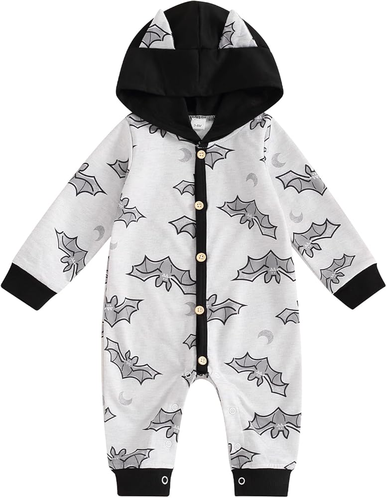 designs: baby rompers girl, baby outfit, spooky baby, baby girl clothes fall, Long sleeve hooded romper bobysuit, Halloween pumpkin ghost face and bat print, hat with two ears, playful and cute, adopting the button front open design, easy to wear and take off, bringing convenience to you. baby boy halloween sweatshirt, baby boy halloween outfit, my first halloween baby boy outfit