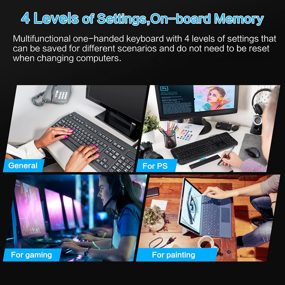 【Wide Applications】This one handed keyboard is a huge time saver, you can do programming for a living, for office works, for play gaming, for music, media, industrial control, laboratory, production line testing and other fields. It is easy and quick way to control scenes without needing to move a mouse around. You can use a lot of keyboard shortcuts all day, and you can program each key to be 1 key or a macro of key combinations.