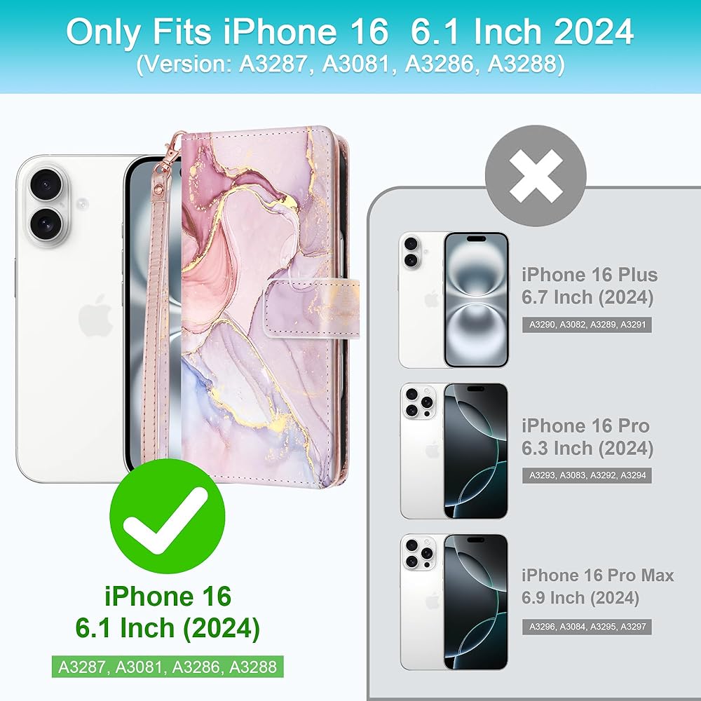 【For iPhone 16 Case & Fast Wireless Charging】Luxury wallet case for Apple iPhone 16 5G(6.1 inch,2024 New Released) Only. Not for Other Models. Please confirm your phone model before purchasing.Support fast wireless charging
