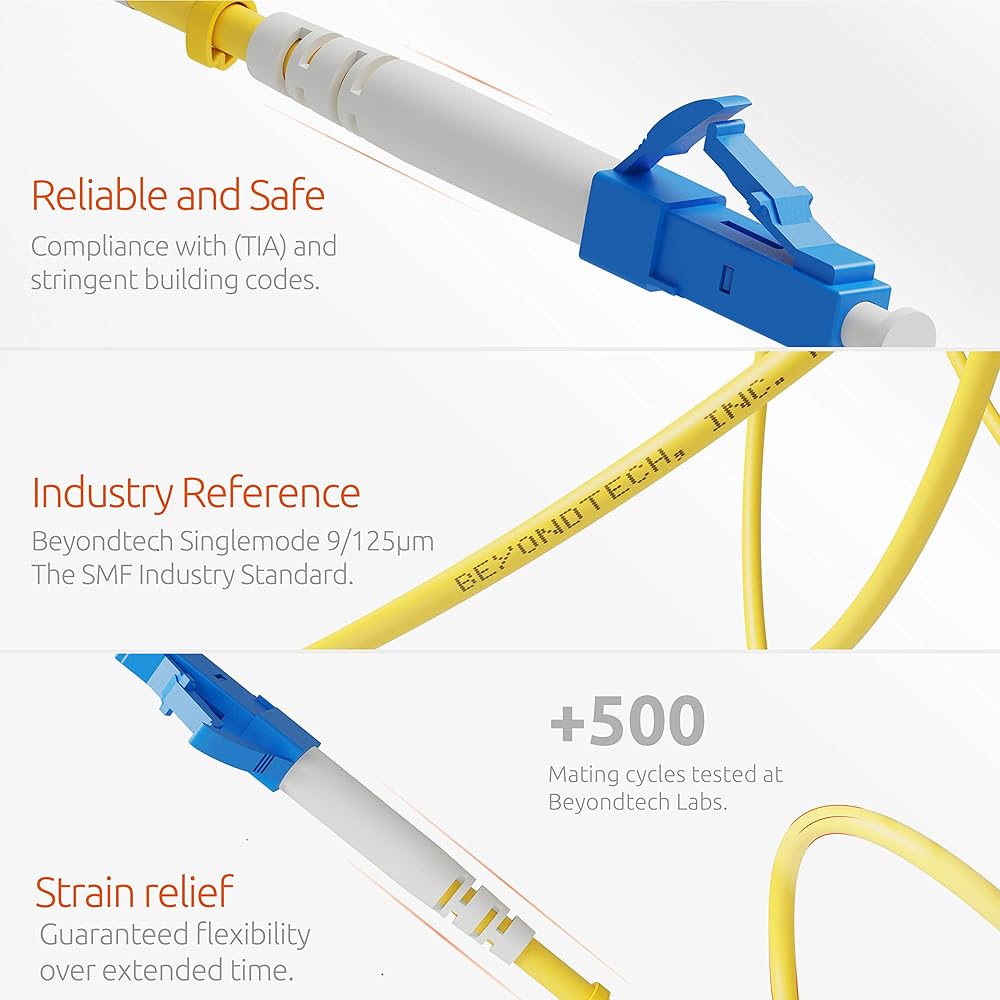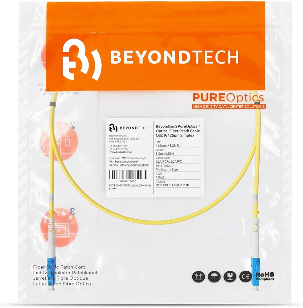 Beyondtech OS2 9/125 LC to LC Fiber Patch cable simplify the installation process and reduce the total cost of ownership of your project, due to pre-terminated fiber intrinsic plug-and-play characteristic.