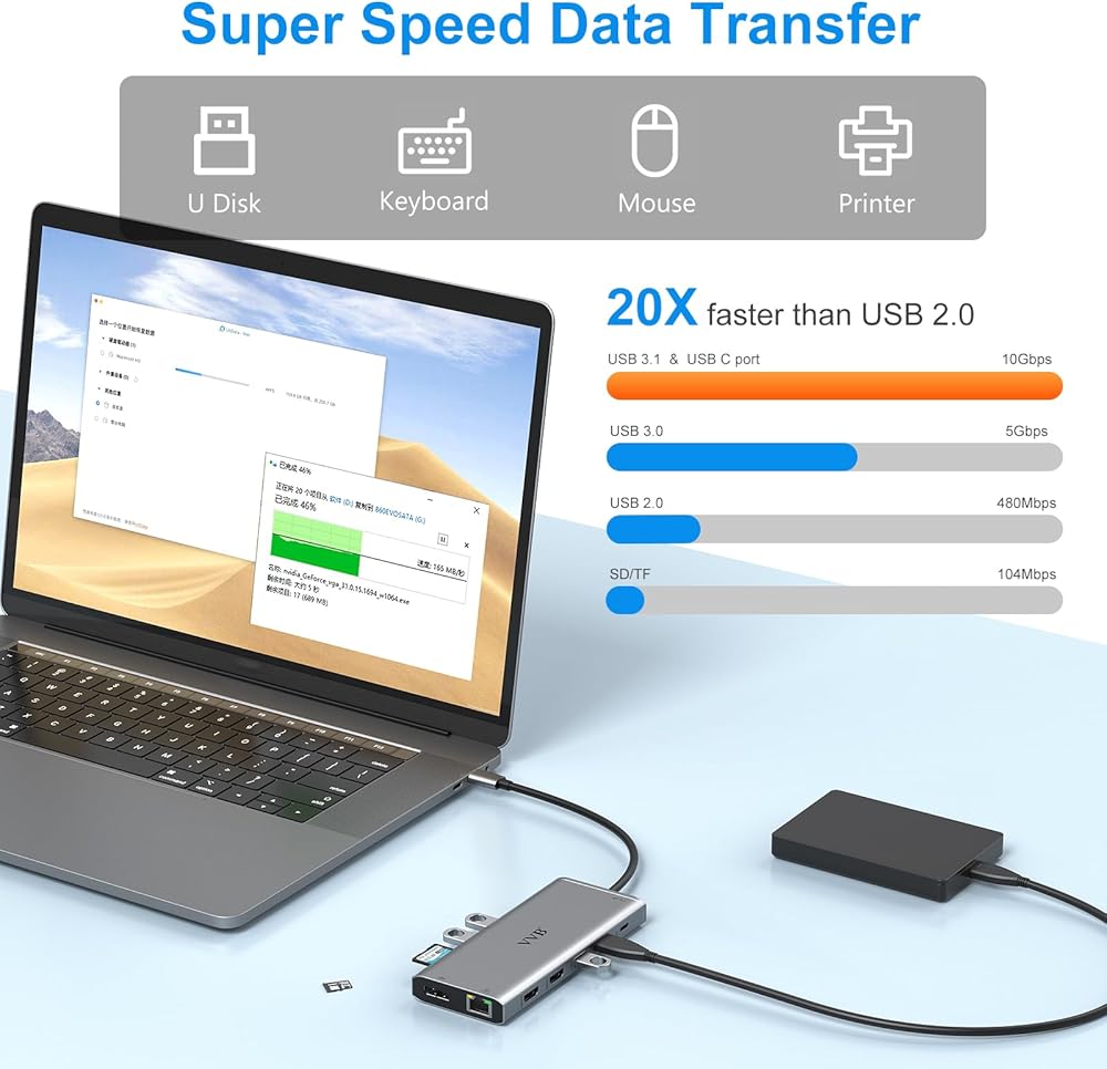 Strong Compatibility: This usb c dock dongle hub multiport adapter compatible with all laptops with thunderbolt3/4/usb-c/type c(support vidieo out put), such as Dell Latitude 5330,5420,5430,5530,7420,9420;Inspiron;Vostro,XPS 13/15/17;HP Elitebook Zbook g7,g8;Probook,Lenovo t14s,Yoga 720/910/920/930,Thinkpad;Surface Pro 8/7/X/Go/Laptop 3,etc. Note: This computer hub laptop dock multiple monitors adapter Not Support Using Converter