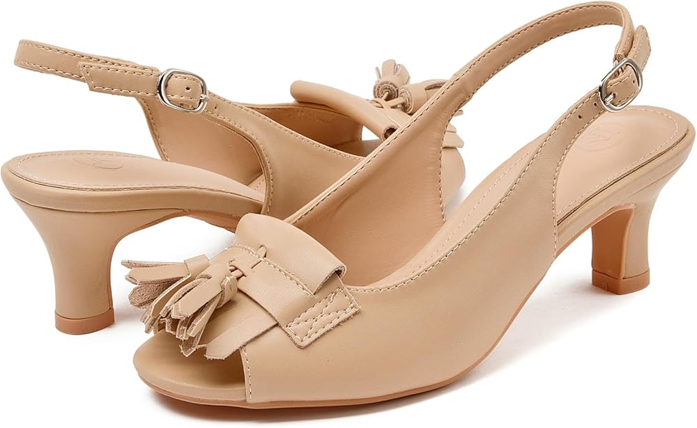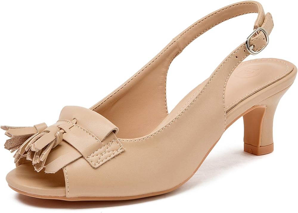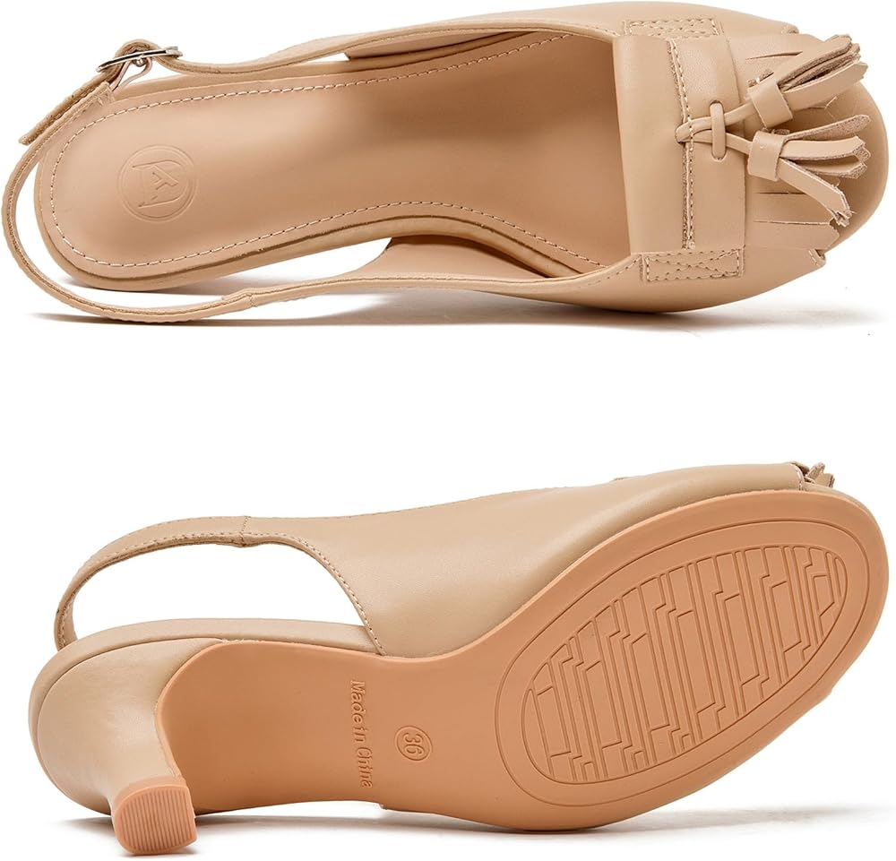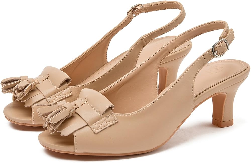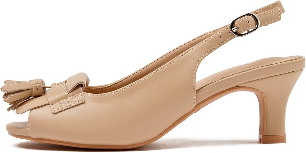 【Elegant Slingback Pumps】: The slingback pumps feature decorative tassels. Open toe silhouette with slingback construction, quickly disperse air to keep your feet dry all day. Heel height: 2.16" (approx), platform chunky heels with the perfect height for any occasion with create the illusion of longer legs.