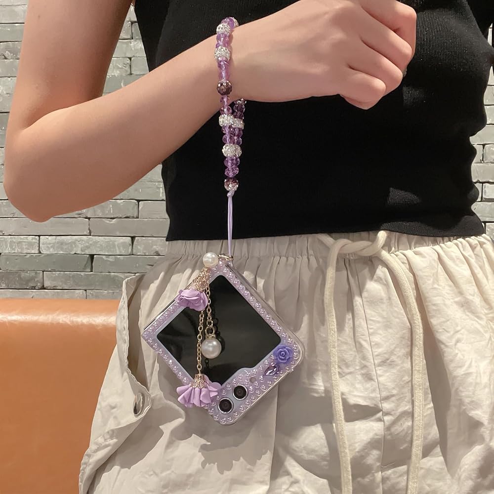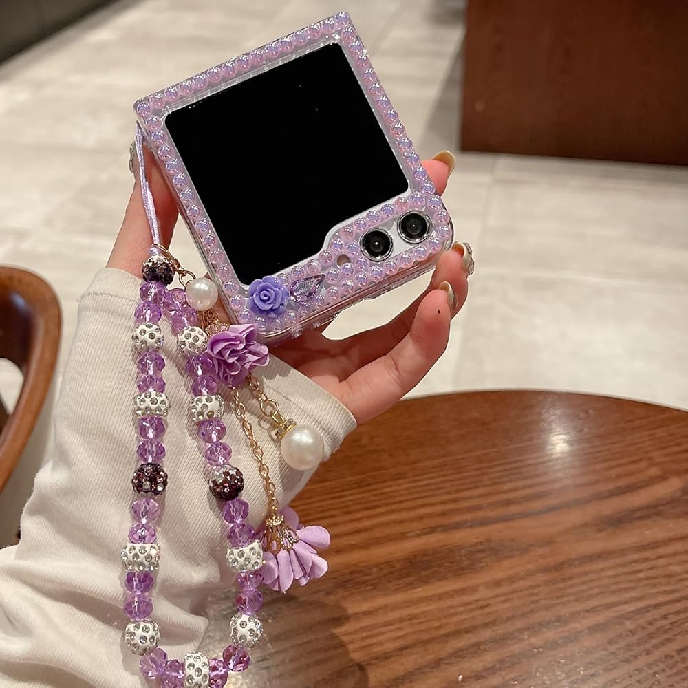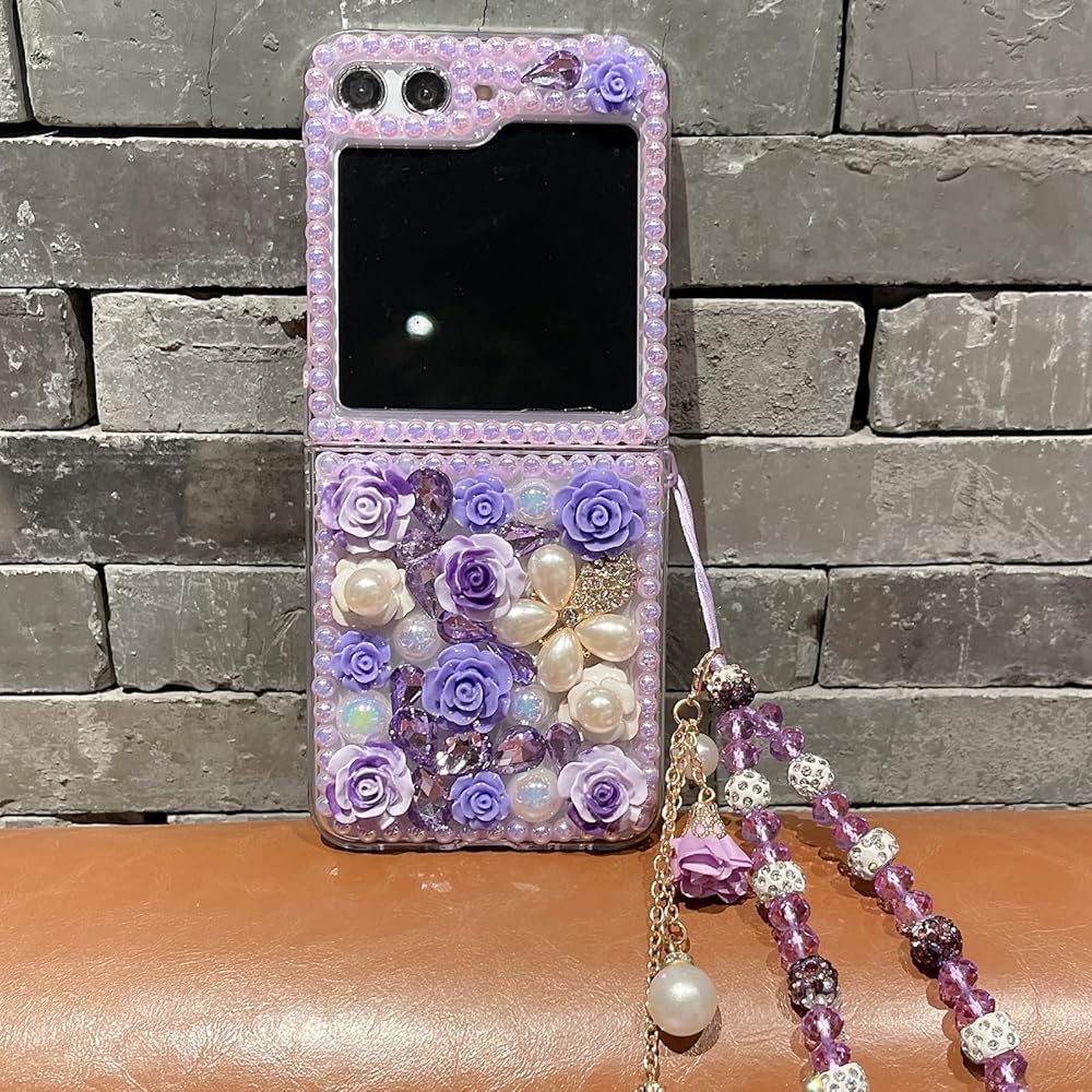 1 X Shockproof Floal Flower Diamond Pearl Phone Case for Samsung Galaxy Z flip 5 5G 2024