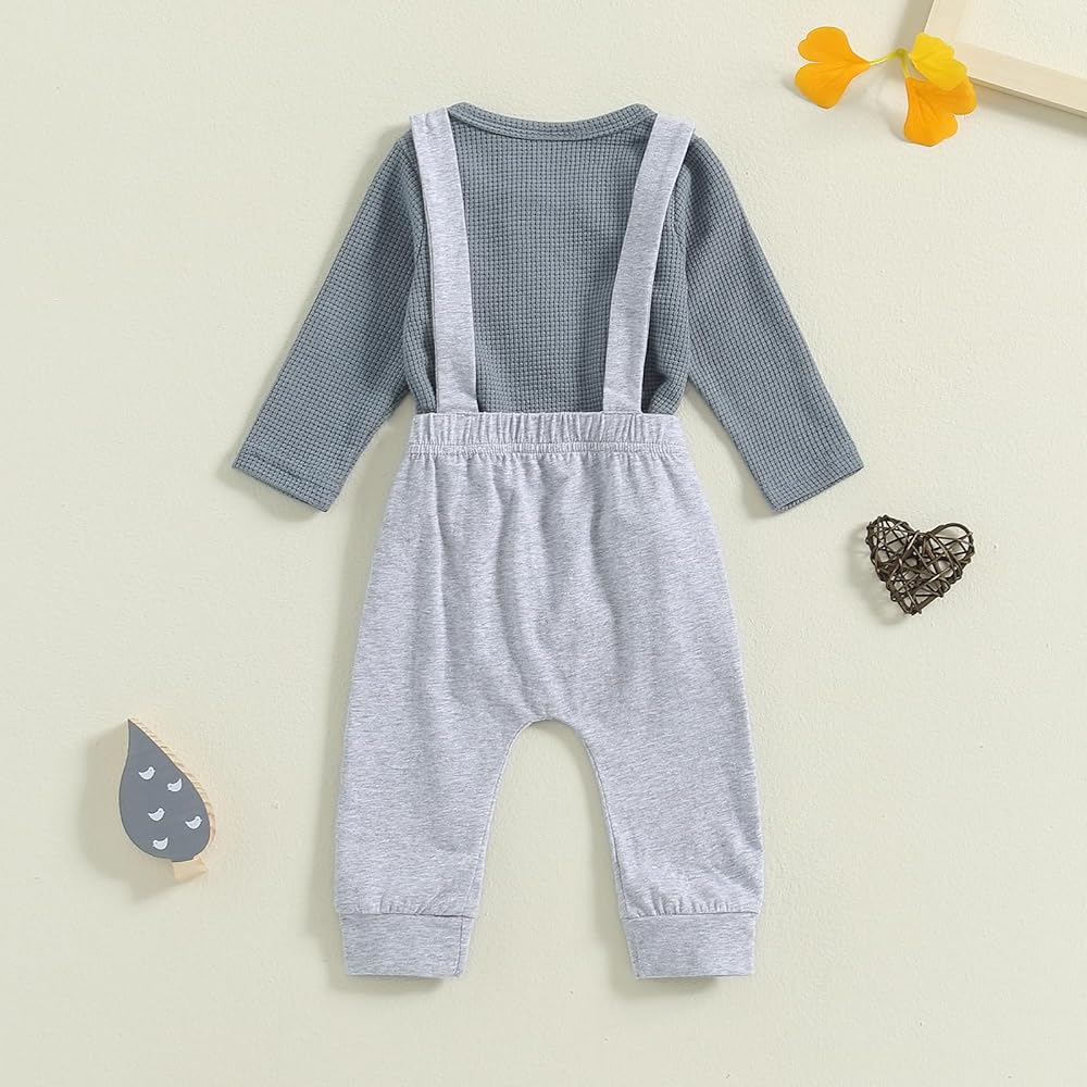 Two piece sets includes: 1 * baby boy long sleeves romper + 1* suspender pants.