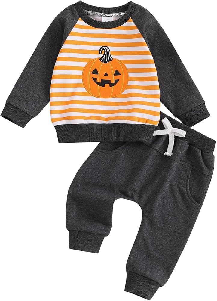 Baby Boys Halloween Two Piece Outfits Long Sleeve Pumpkin Letter Pullover Sweatshirt Pants Fall Winter Clothes