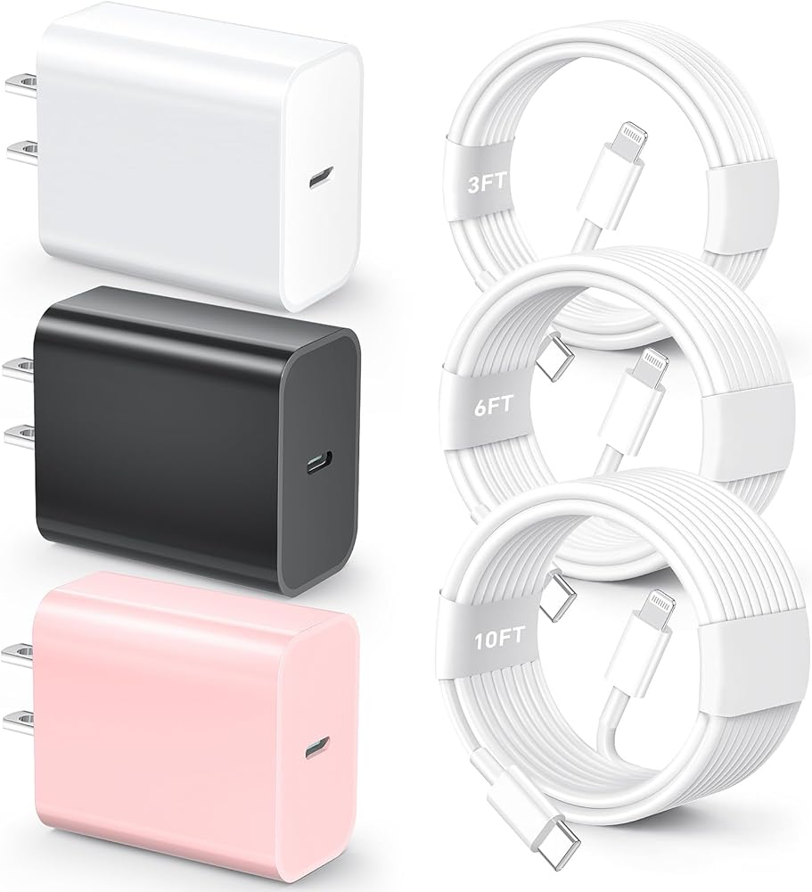 💁【What You'll get】: 3-Pack 20W PD USB C Wall Charger with 3FT&6FT&10FT USB C to ightning Cables,We also offer a 24/7 customer consultation.If you encounter any problems during the use, please contact us in time, we will give you the fastest satisfactory answer!