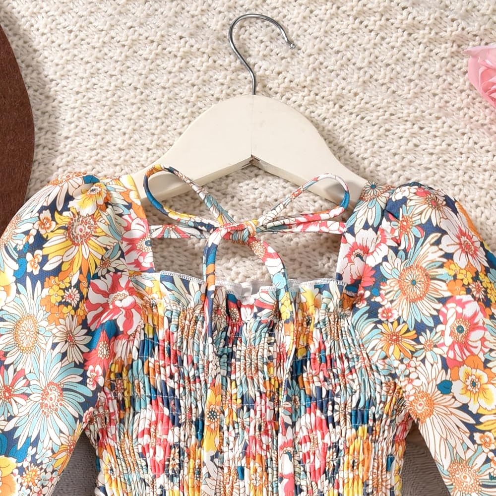 Unique Design: Toddler fall dress with a shirred stretchy bodice for a perfect fit to the girl's body size. Lantern sleeve, square neck, making your princess more adorable, meet all your fantasies and expectations of fall