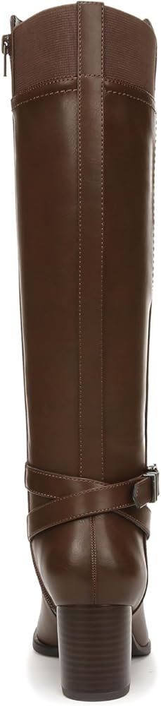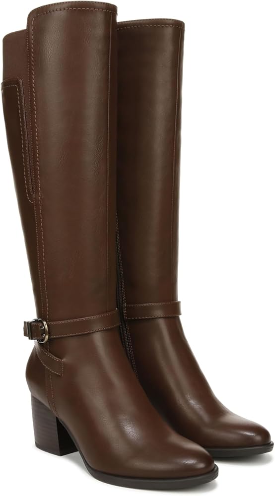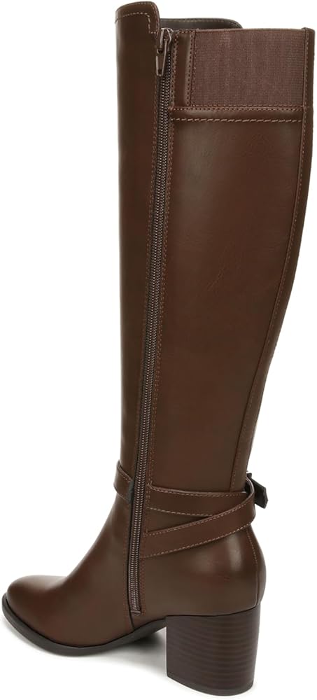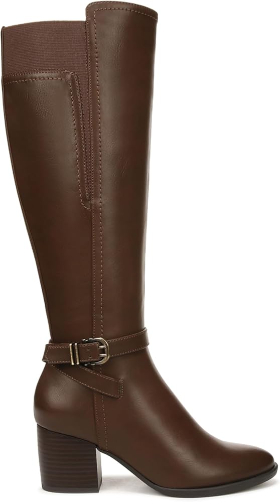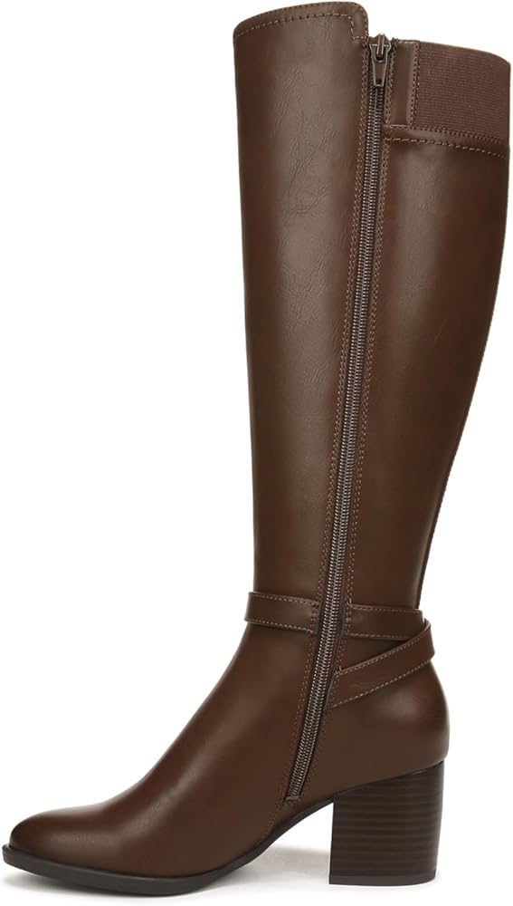 From SOUL Naturalizer // Try these knee high boots on for size. With a flexible calf and countless tough-to-find sizes, you'll love our Beautiful Fit. Comfortable, all day block heel boots for women with wraparound strap and buckle detail. Synthetic upper with 100% recycled polyester upper lining and almond toe. Side zip closure and side/back elastic goring for extra flexibility. All-Thru Comfort: soft foam lining, arch support with memory foam, lightweight and flexible outsole. 3/8 inch platform, 2 1/2 inch block heel. 14.76 inch boot height; 14.33 inch calf circumference. Note: Measurements based on size 6 boot. For each half size larger, shaft height increases by . 12 inches, circumference by . 20 inches. Consciously packaged: 100% of our shoe boxes are made of 80% recycled paper + soy-based ink. Designed using some environmentally preferred materials. WHY YOU'LL LOVE IT: Forever elegant silhouettes with all day wearability, available in an inclusive range of sizes and widths. Designed to the contours of a woman's foot. The Beautiful Fit. Since 1927.