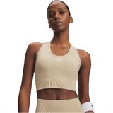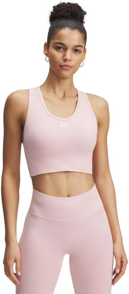 Delivers strategic support, tailored for medium-impact activities like cycling, weight training & boxing. Soft, removable cups for enhanced shape & coverage. Layered design with mesh straps for added breathability. UA Seamless is a soft knit with engineered ventilation, mapped to the places you need it most. Material wicks sweat & dries really fast. 4-way stretch construction moves better in every direction.